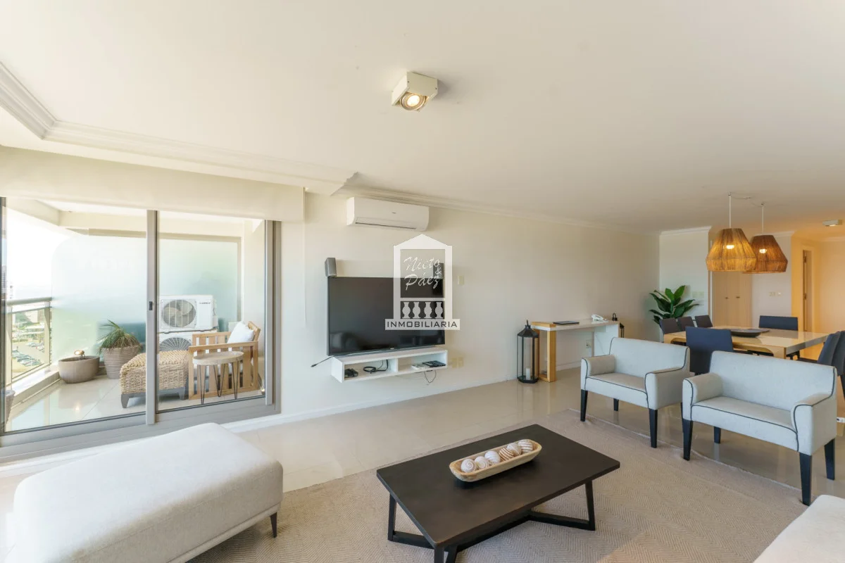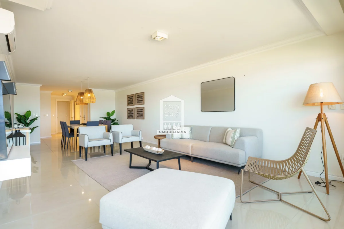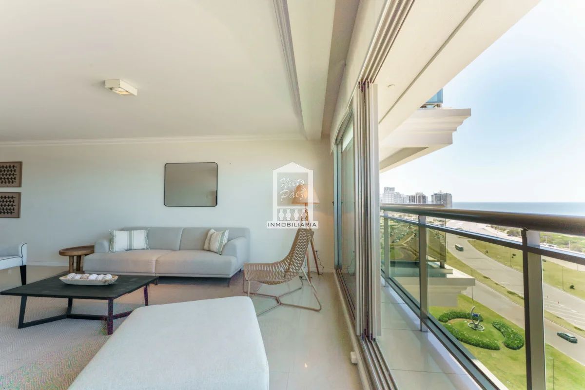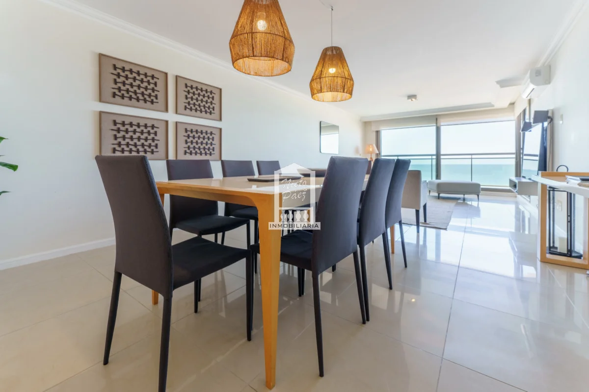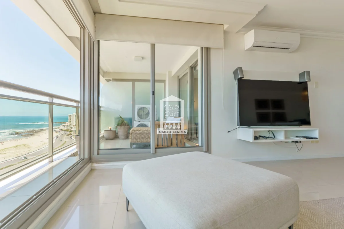 La unidad se destaca por su amplitud, luminosidad y una distribución que combina perfectamente vistas, funcionalidad y elegancia. El living comedor de generosas dimensiones se integra con el exterior a través de un cómodo balcón, desde donde se despliega una vista abierta y privilegiada hacia Playa Brava, acompañando también a una máster suite al frente que eleva la experiencia diaria a otro nivel.