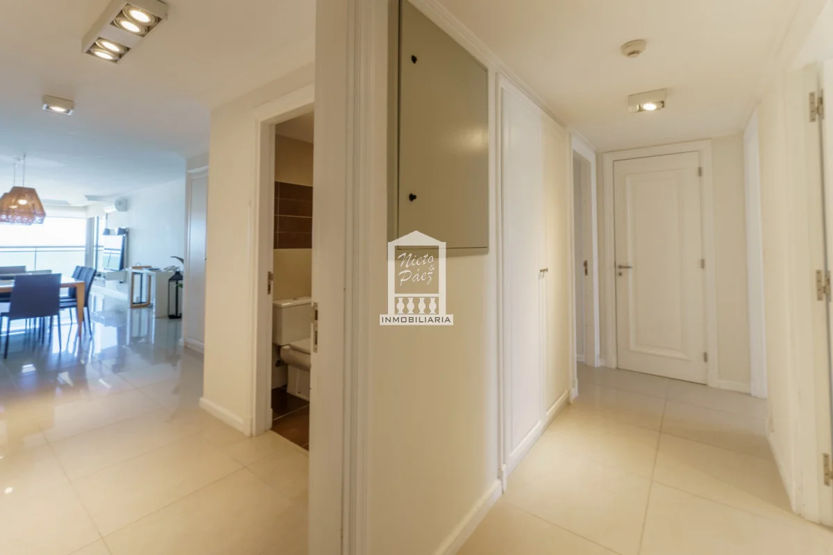 Hacia el contrafrente, dos suites adicionales, amplias y llenas de luz, regalan vistas abiertas hacia la Mansa, logrando una orientación ideal que asegura sol durante todo el día y una ventilación cruzada natural. La cocina definida, con área de breakfast, se presenta totalmente equipada y conectada a un práctico lavadero independiente.