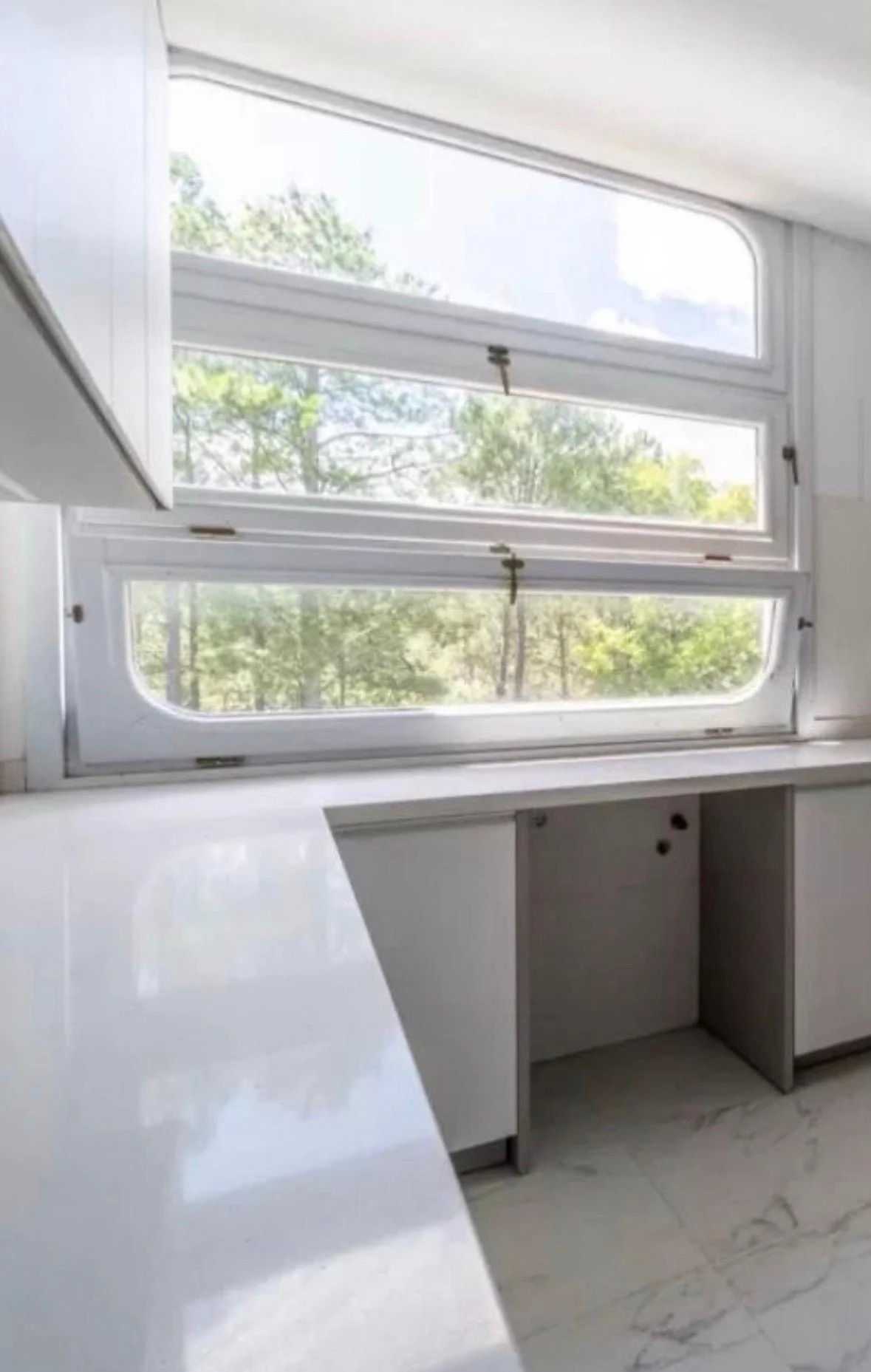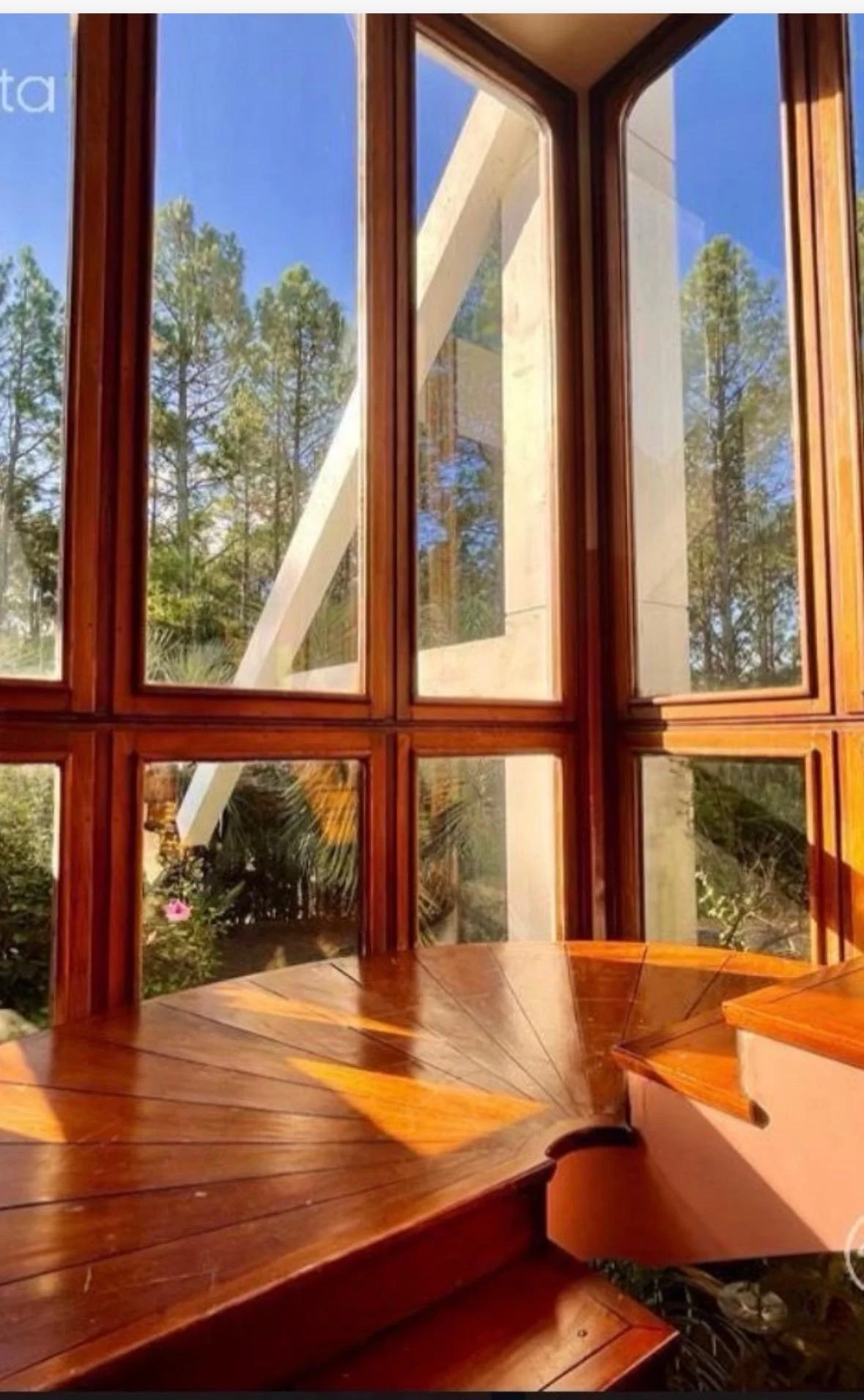 La casa de homigon convencional grandes ventanales en Madera de la epoca y pisos de Lapacho