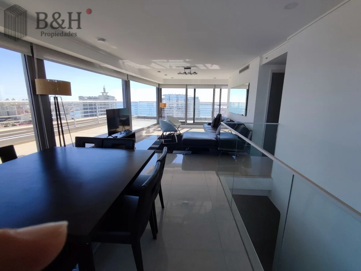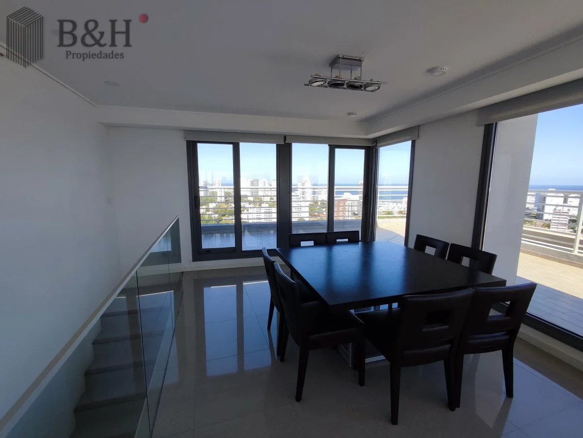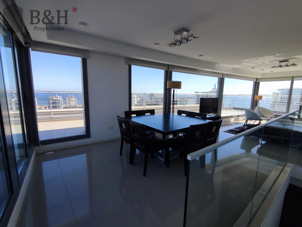 Playa Mansa. Pent house duplex. 3 dormitorios en suite, principal con terraza propia y jacuzzi, living comedor con vista a bosque, brava y mansa, amplia terraza, toilette, cocina, parrillero propio, dependencia de servicio y lavadero. 2 garages.