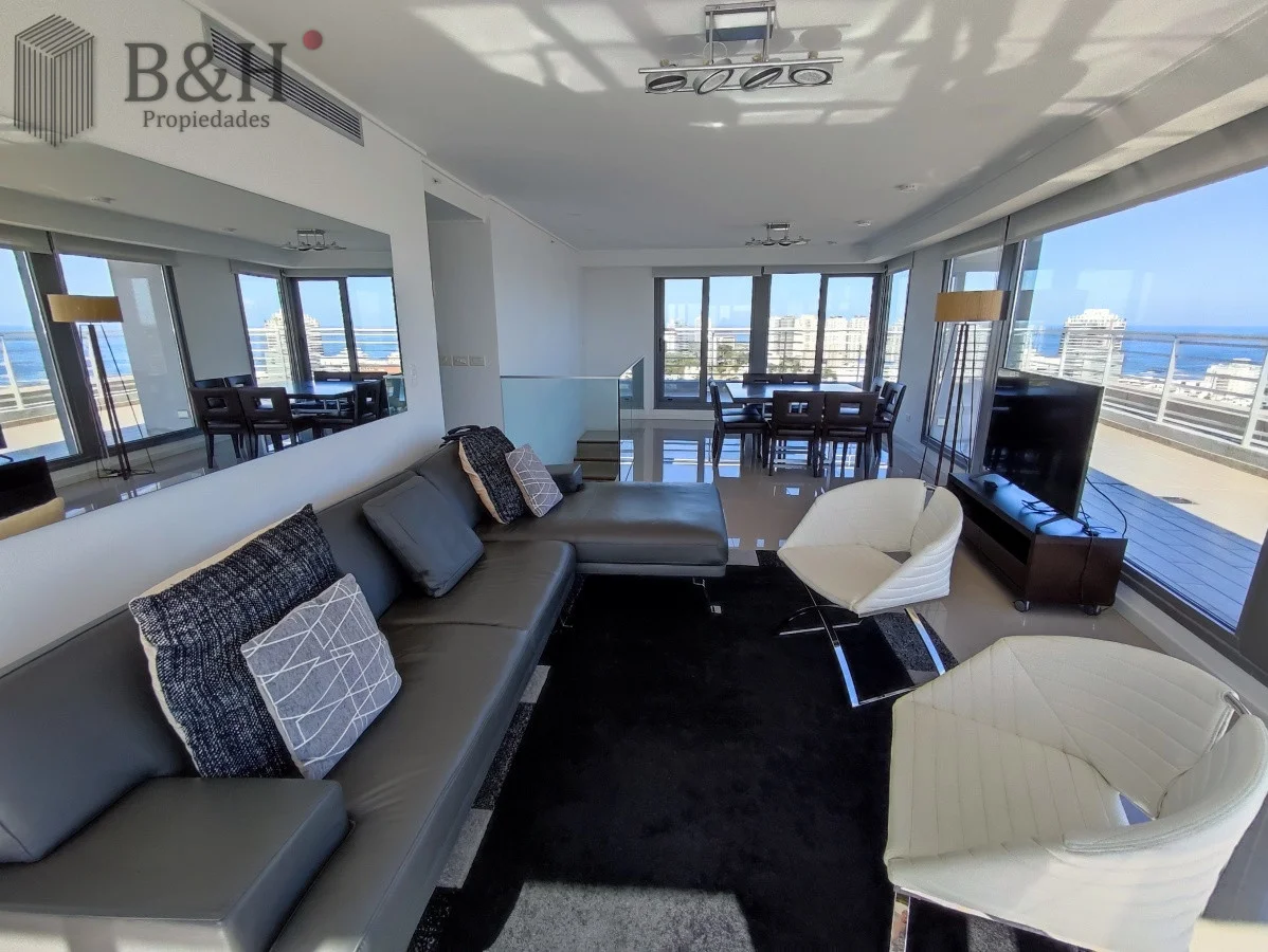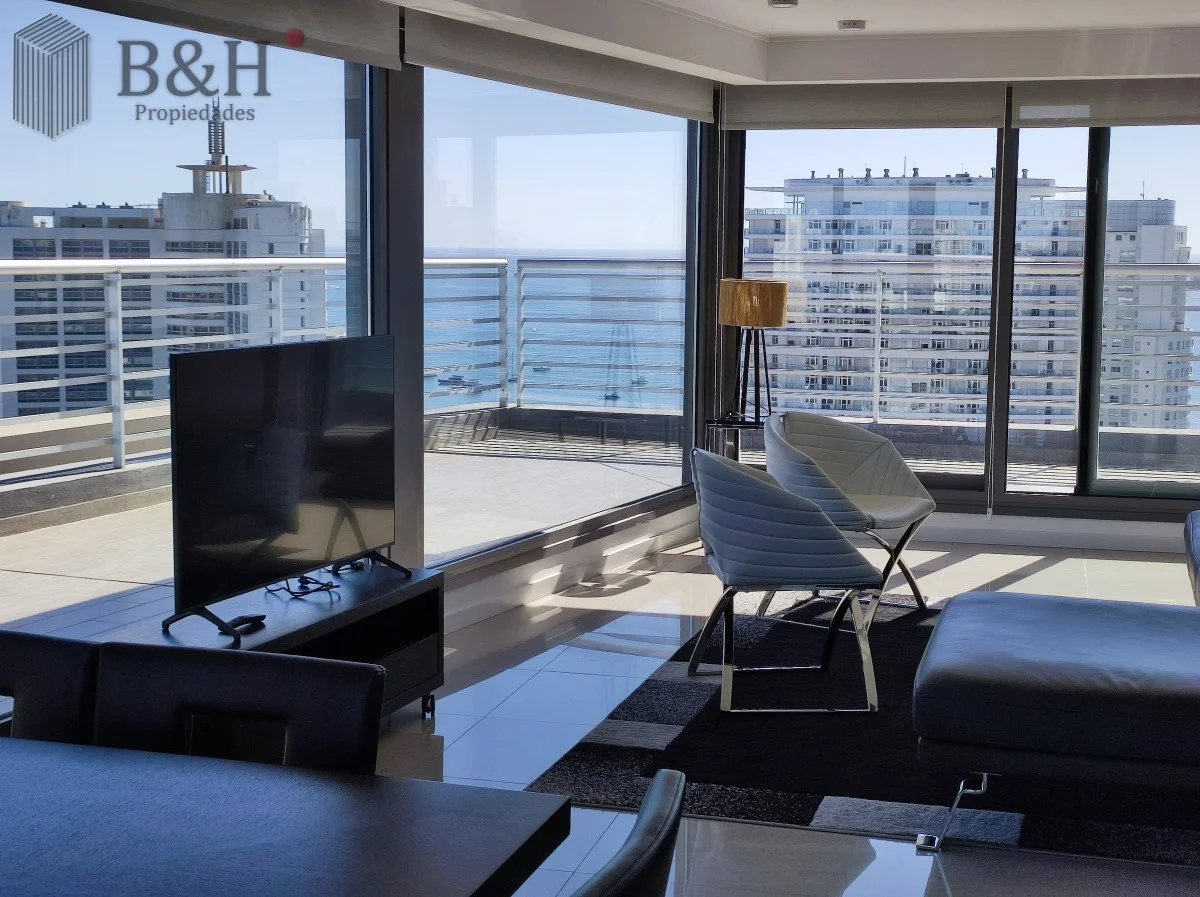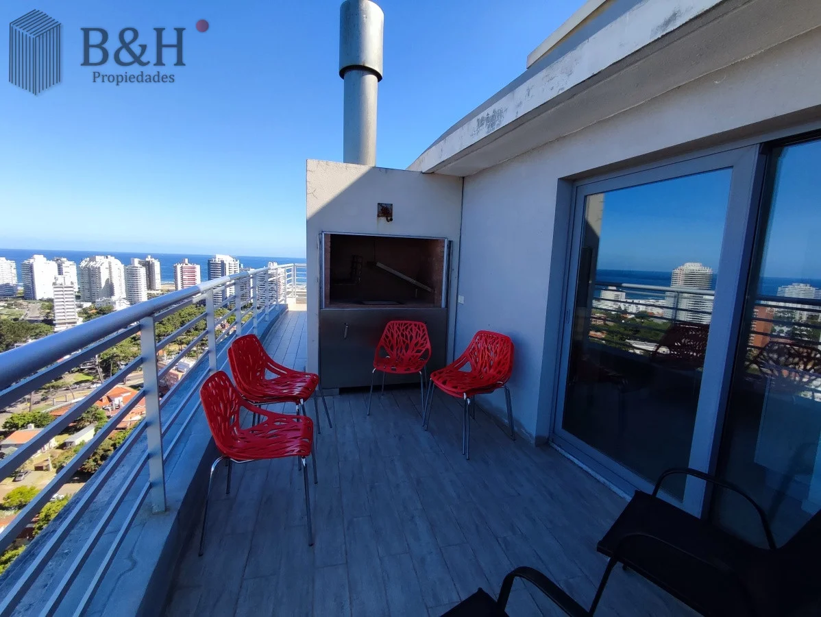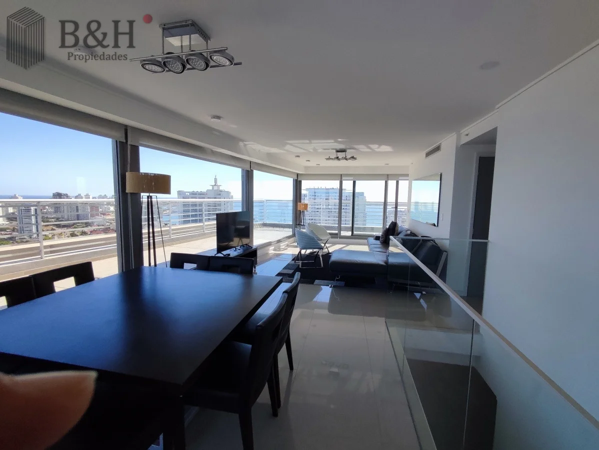 Playa Mansa. Pent house duplex. 3 dormitorios en suite, principal con terraza propia y jacuzzi, living comedor con vista a bosque, brava y mansa, amplia terraza, toilette, cocina, parrillero propio, dependencia de servicio y lavadero. 2 garages.