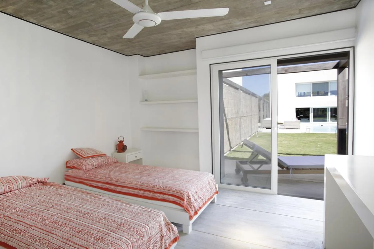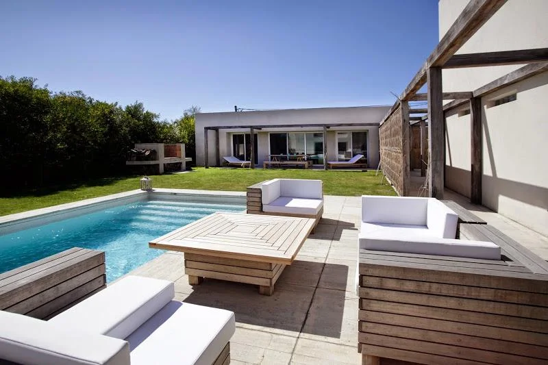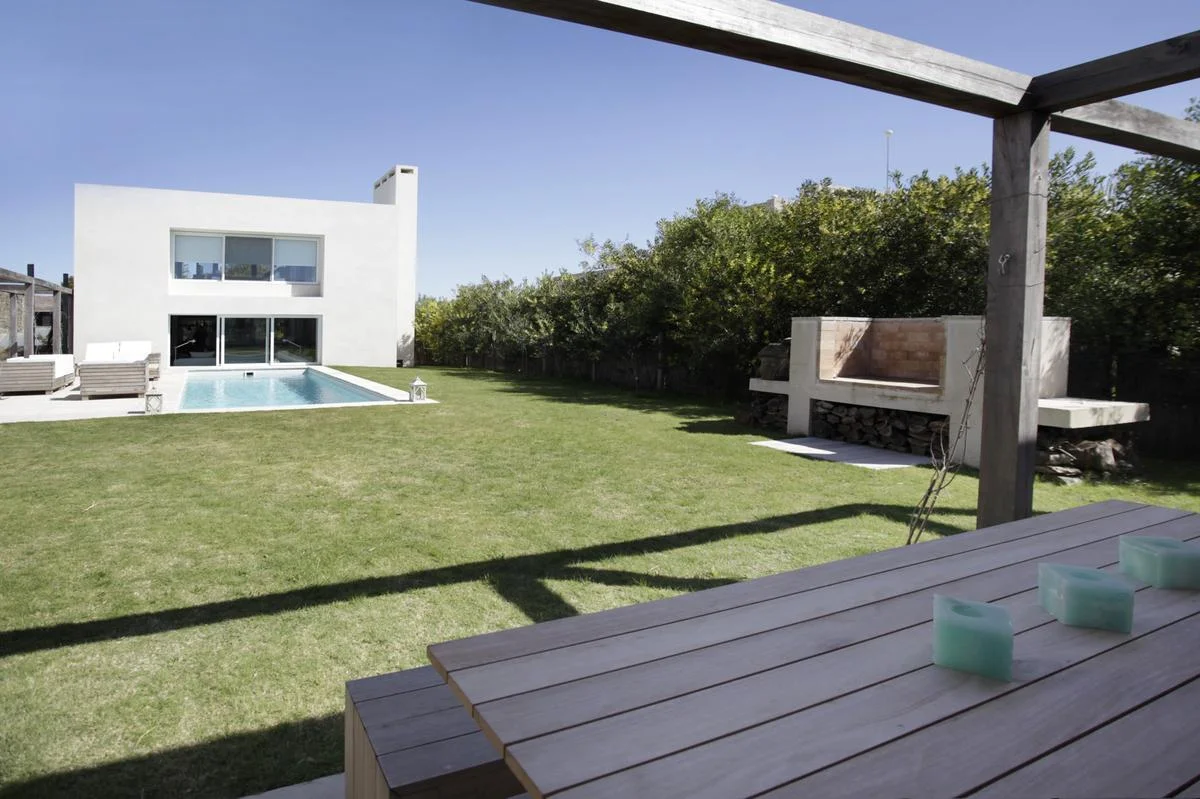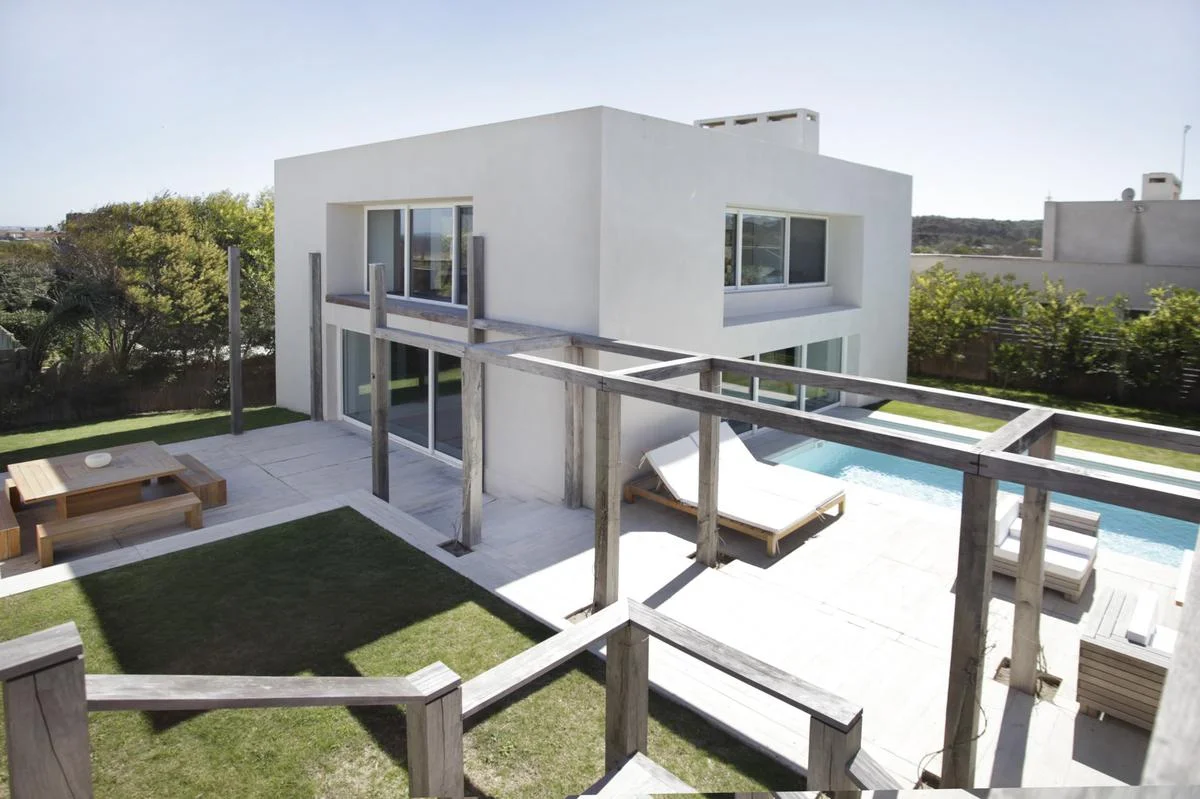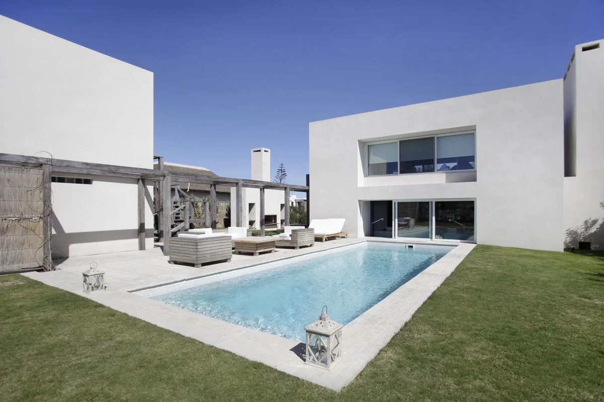 Excelente diseño! Casa con 3 dormitorios y servicio, con 330 m2 construidos en 3 bloques, sobre una superficie de 1.000 m2. En el bloque principal se encuentra el living comedor con inmensa estufa a leña y cocina integrada. En planta alta está la master suite con vestidor, baño con ducha y bañera. Hermosa vista al mar. El segundo bloque consta de dos dormitorios en suite (uno matrimonial o otro con dos camas) y un estar con cocina integrada. Todos los ambientes con ventilador de techo. El tercer bloque está compuesto por un dormitorio en suite (o dependencia de servicio) lavadero equipado con lavarropas, secarropas, tender, ducha exterior frio caliente, toilette. Además, la casa cuenta con dos parrilleros, jardin y gran piscina. TV cable y Wi-fi.