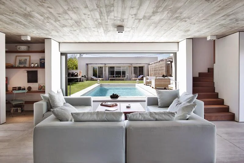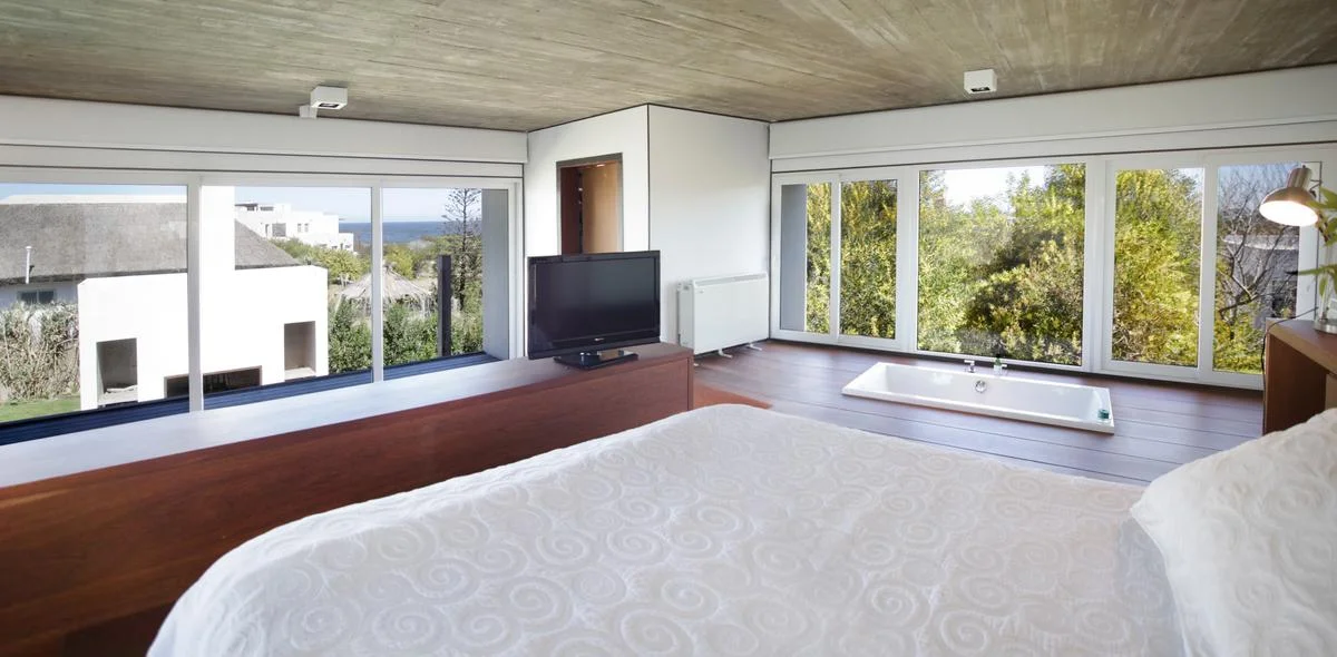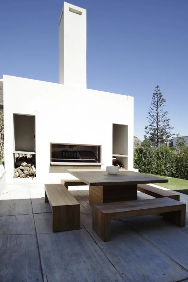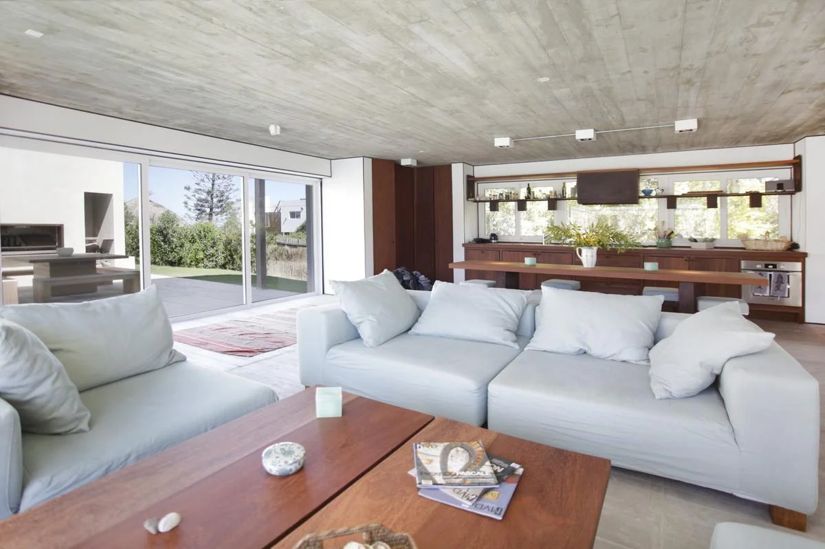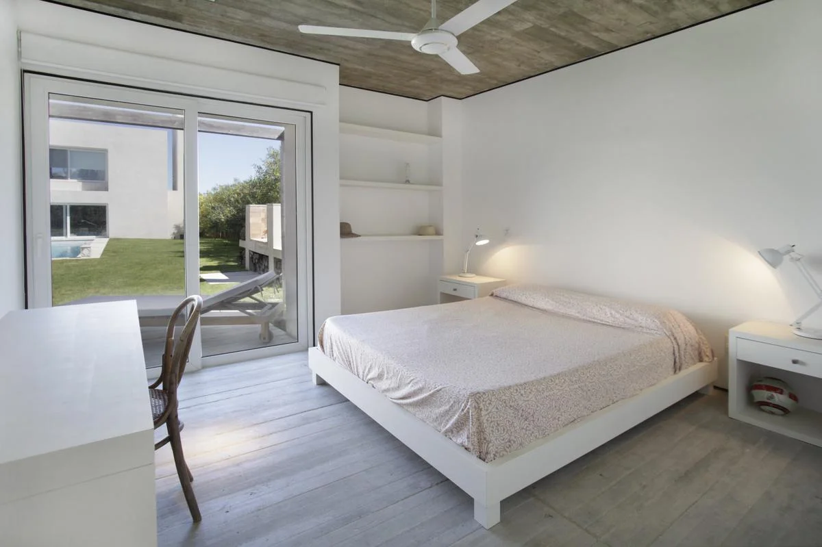 Excelente diseño! Casa con 3 dormitorios y servicio, con 330 m2 construidos en 3 bloques, sobre una superficie de 1.000 m2. En el bloque principal se encuentra el living comedor con inmensa estufa a leña y cocina integrada. En planta alta está la master suite con vestidor, baño con ducha y bañera. Hermosa vista al mar. El segundo bloque consta de dos dormitorios en suite (uno matrimonial o otro con dos camas) y un estar con cocina integrada. Todos los ambientes con ventilador de techo. El tercer bloque está compuesto por un dormitorio en suite (o dependencia de servicio) lavadero equipado con lavarropas, secarropas, tender, ducha exterior frio caliente, toilette. Además, la casa cuenta con dos parrilleros, jardin y gran piscina. TV cable y Wi-fi.