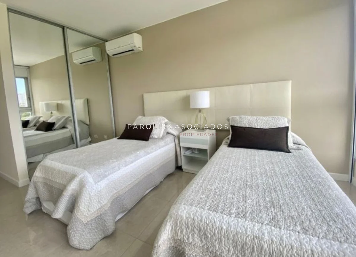 Los dos dormitorios en suite son verdaderos refugios de privacidad y lujo. Cada uno cuenta con su propio baño completo y armarios empotrados, necesariamente funcionalidad y belleza en un solo espacio. El dormitorio principal, ubicado al frente del apartamento, ofrece acceso directo al balcón terraza, lo que brinda a los residentes la oportunidad de despertar con vistas espectaculares al océano y disfrutar de la brisa marina en cualquier momento del día.