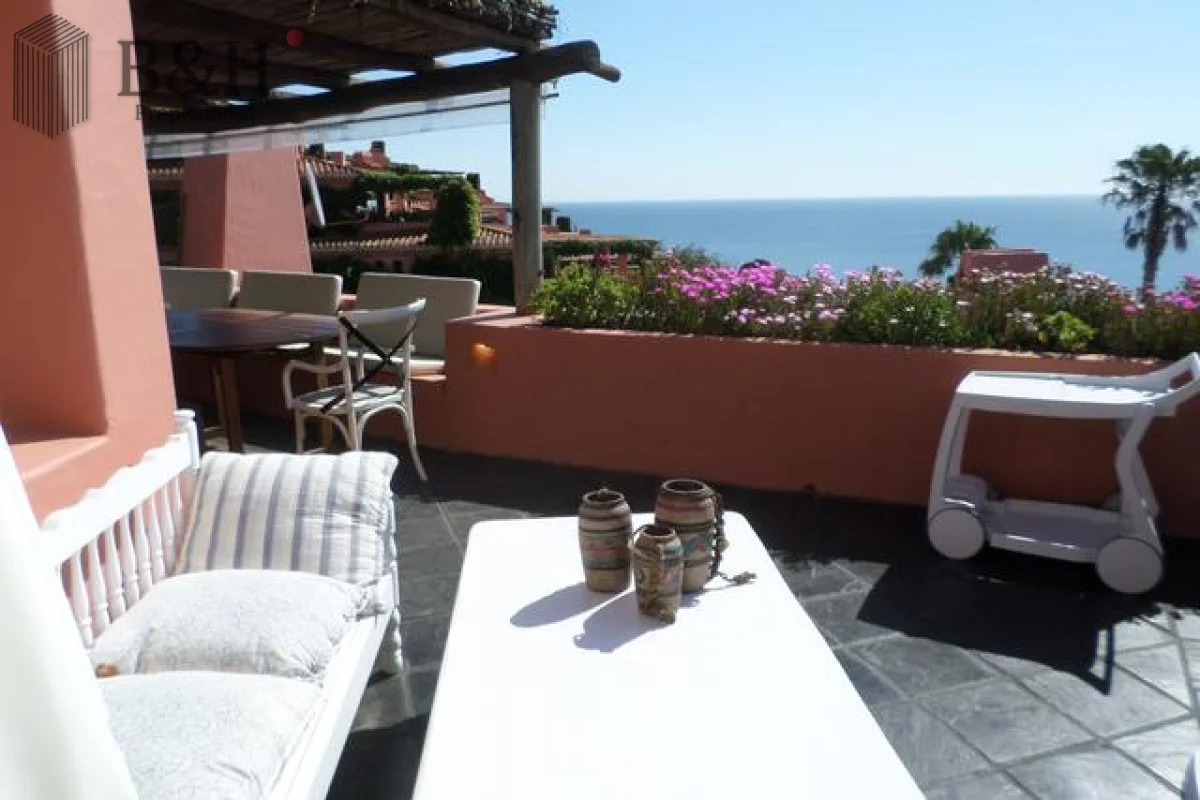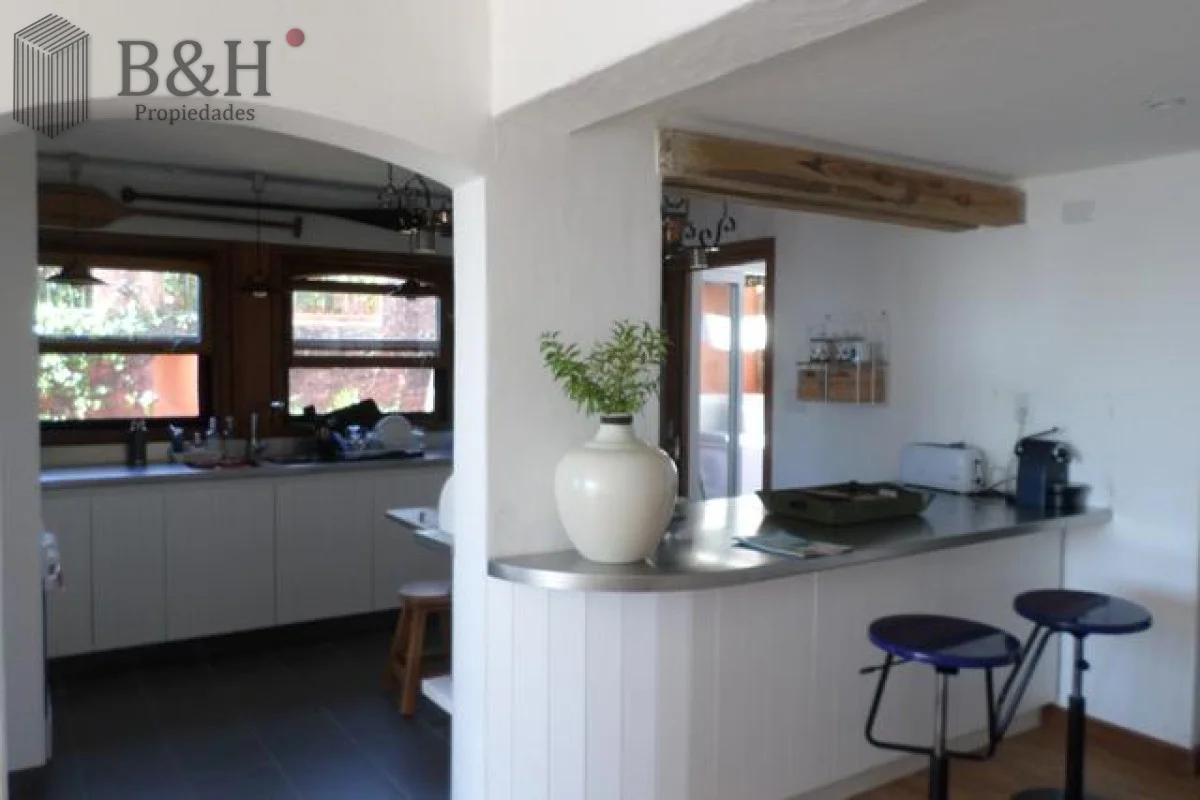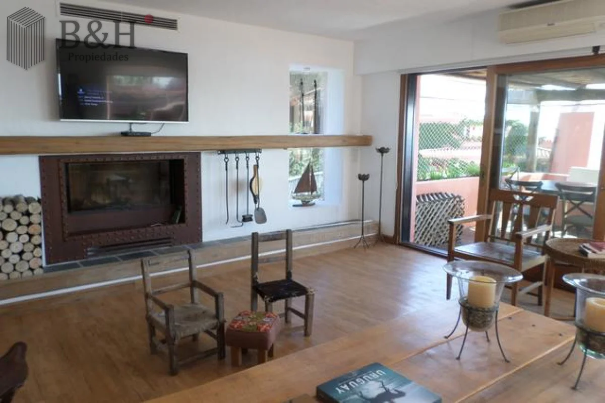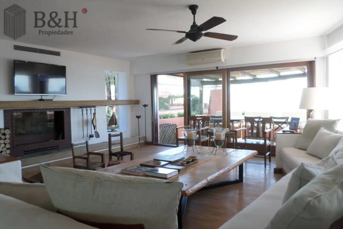 Apartamento en dos plantas: en planta alta living amplio con vista, comedor, toilette, habitación de húespedes con baño, cocina integrada bien equipada que se comunica con la terraza, lavadero con lavarropas y secarropas; habitación de servicio con baño, terraza con parrillero.