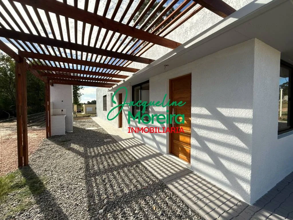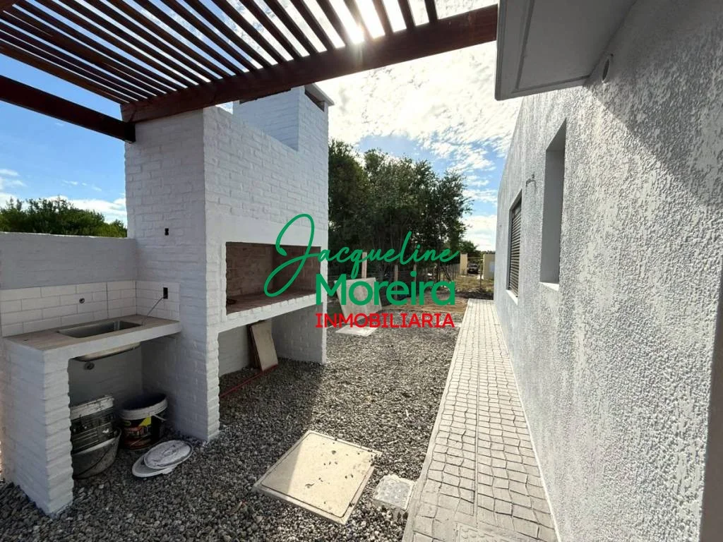 *C101807* MEDANOS IV, casa a Estrenar!!! (lado Izquierdo) Casa en régimen de propiedad horizontal. Dada su cantidad de terreno propio es como un padrón único, ya que no comparte ningún área ni servicio con la casa gemela. Desarrollada en una sola planta con materiales de buena calidad: paredes de ladrillo bolseado, techo en isopanel con cielorraso de yeso, losa de hormigón con espacio vereda perimetral, pisos en porcelanato, aberturas de aluminio. Placares melamínicos, mesadas en granito. Dispone de living comedor con cocina integrada. 2 Dormitorios cómodos y 2 baños completos. Cochera y parrillero. Tiene SANEAMIENTO