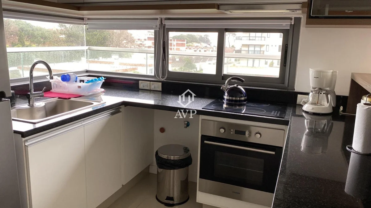 A 200 metros de la Parada 6 de la Brava Con todos los servicios Vista parcial al mar Terraza perimetral Living comedor con cocina integrada 2 dormitorios (uno en suite) 2 baños Garage con baulera Venta o alquiler Referencia Interna : Tera-802
