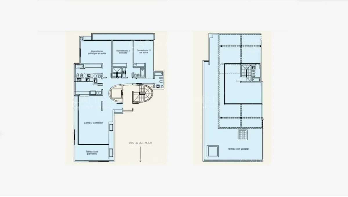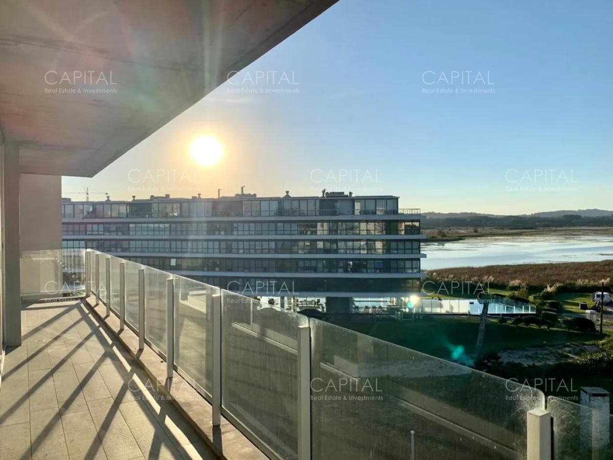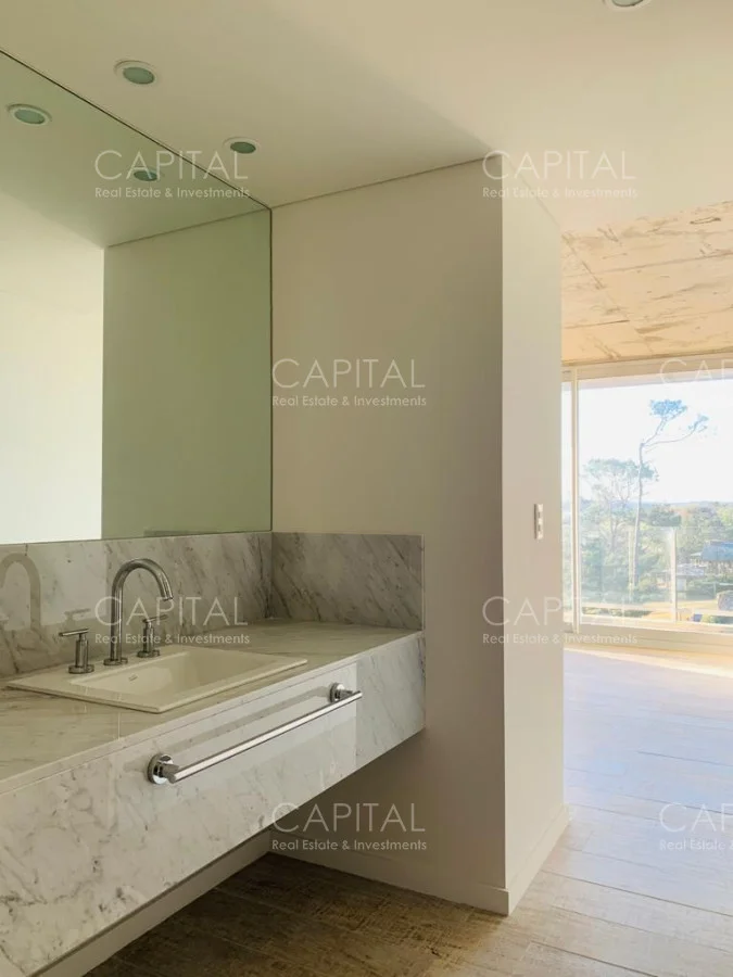 Muy buena planta con espacios amplios y luminosos, que se funde con el horizonte marino. Distribuido en dos plantas; la principal dispone de gran living comedor con estufa a leña y salida al balcón con parrillero propio mirando al mar. Cocina semi integrada con barra desayunador. Tres cómodos dormitorios en suite, el principal con vestidor, más toilette. Dos balcones, el principal al frente con parrillero propio y segundo en sector dormitorios mirando a la Laguna.