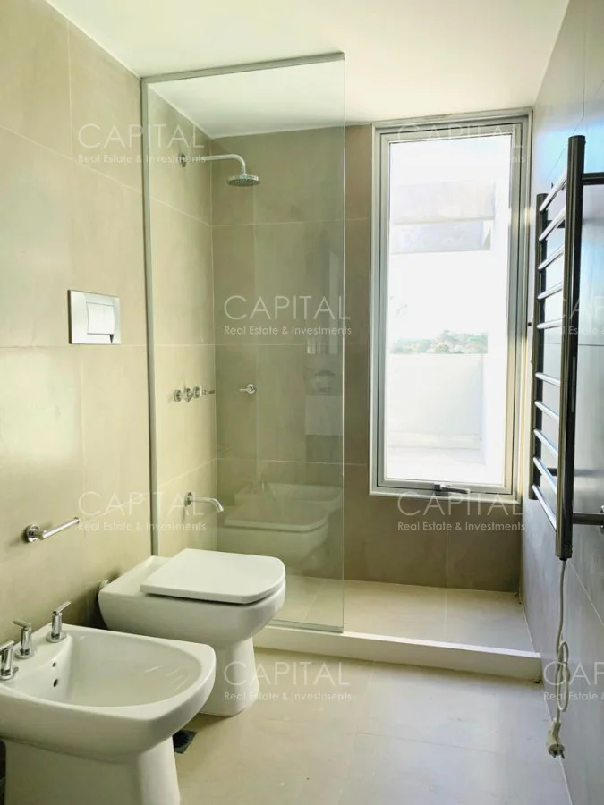 Moderno edificio donde se disfruta todo el año del confort y la privacidad. Cuenta con aire acondicionado frío-calor en todos los ambientes. Garage cerrado para un vehículo, más espacio para otro vehículo bajo techo y baulera.