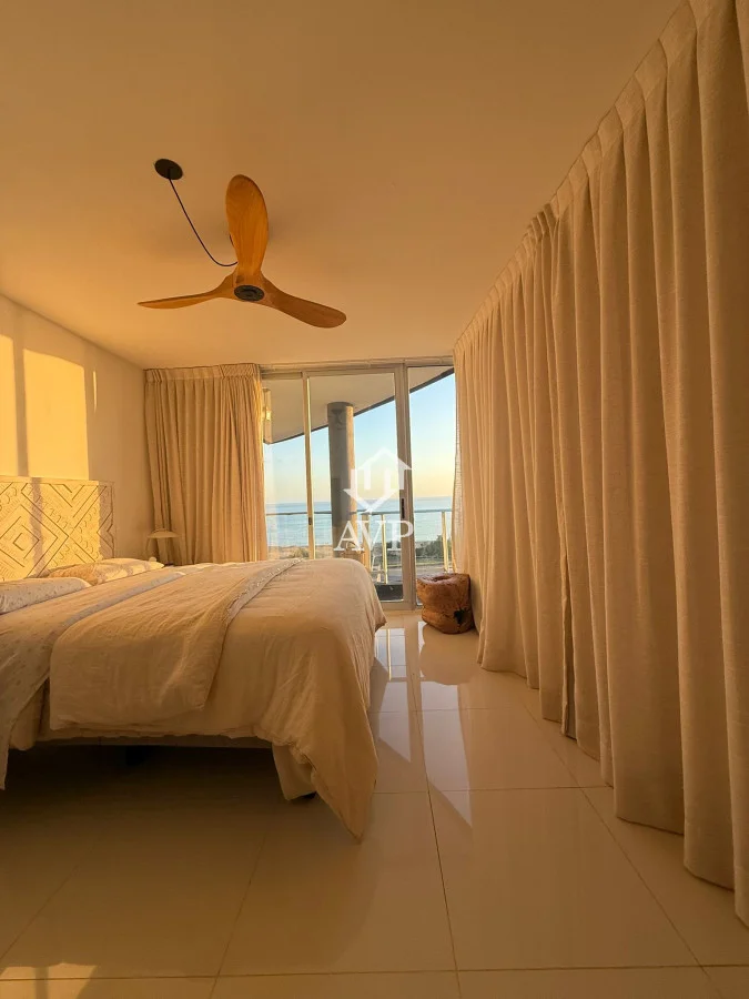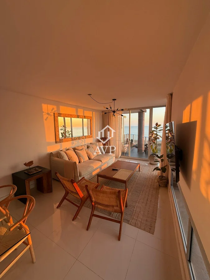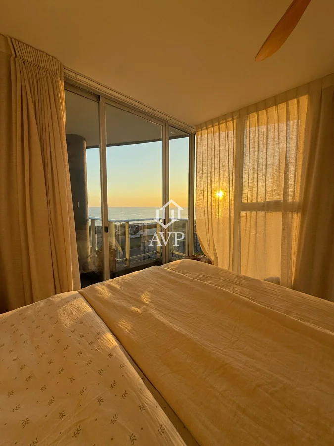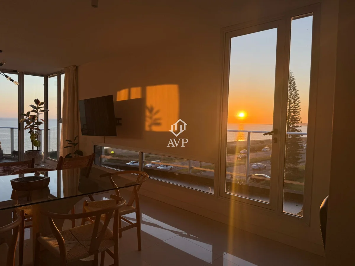 Primera línea, frente a playa tranquila Con inmejorable vista al atardecer en el mar Muy luminoso Orientación Oeste y norte. 3 terrazas, una de ellas con parrillero propio Living comedor con cocina semiintegrada Toilette Ventanales a terrazas al frente y lateral con parrillero Segundo nivel: 2 dormitorios en suite El dormitorio principal con ventanales y terraza a la puesta del sol y al mar Garage para camioneta grande Baulera Edificio con piscina cerrada y piscina abierta climatizadas Gimnasio Sauna Playroom El precio no incluye la comisión inmobiliaria Referencia Interna : Tera-1832