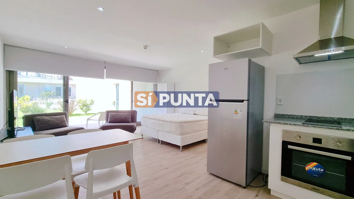 Monoambiente en Venta, Punta Ballena, La Grutas En Syrah Premium Punta Ballena encontramos este apartamento de un ambiente con cocina integrada y baño, en planta baja. Complejo ubicado frente al mar, esta unidad mira al jardin. Totalmente equipado para una estadía inigualable. Cuenta con un sector exclusivo de pileta climatizada, spa y jacuzzis. Además ofrece Winebar en terraza frente al mar con salón de convenciones y eventos. Consulta para conocer este apartamento! Referencia Interna : Tera-14045