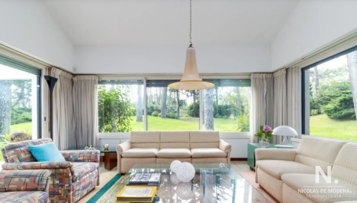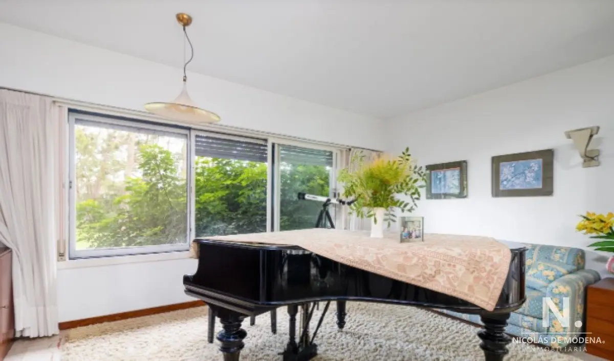 Una distribución de tres plantas, en la planta a nivel de calle se encuentra el living y comedor de grandes dimensiones y doble altura en techos, estufa a leña de doble boca, recepción y office o sala de juegos. Las áreas comunes se encuentran en el centro de la propiedad.
