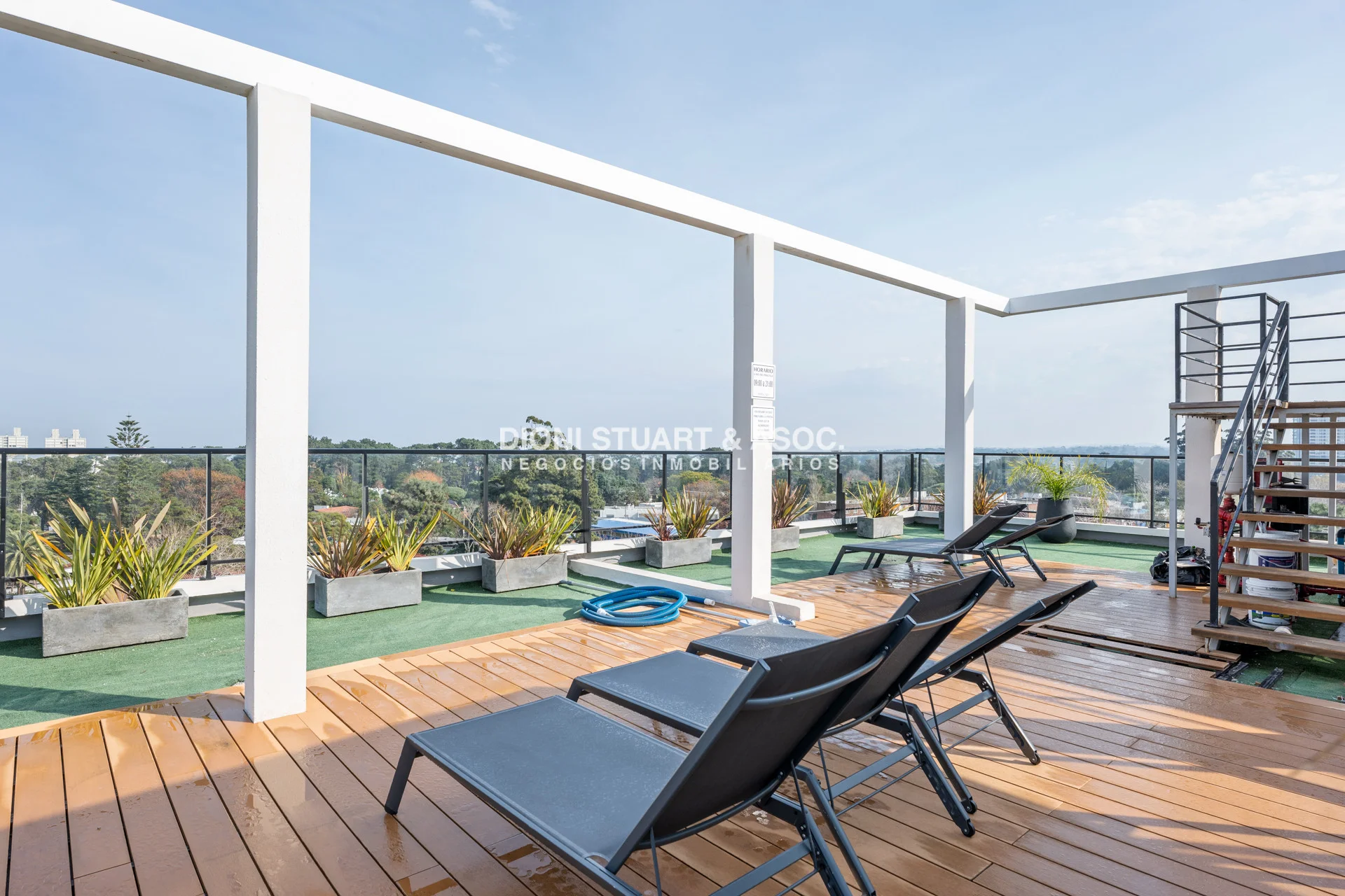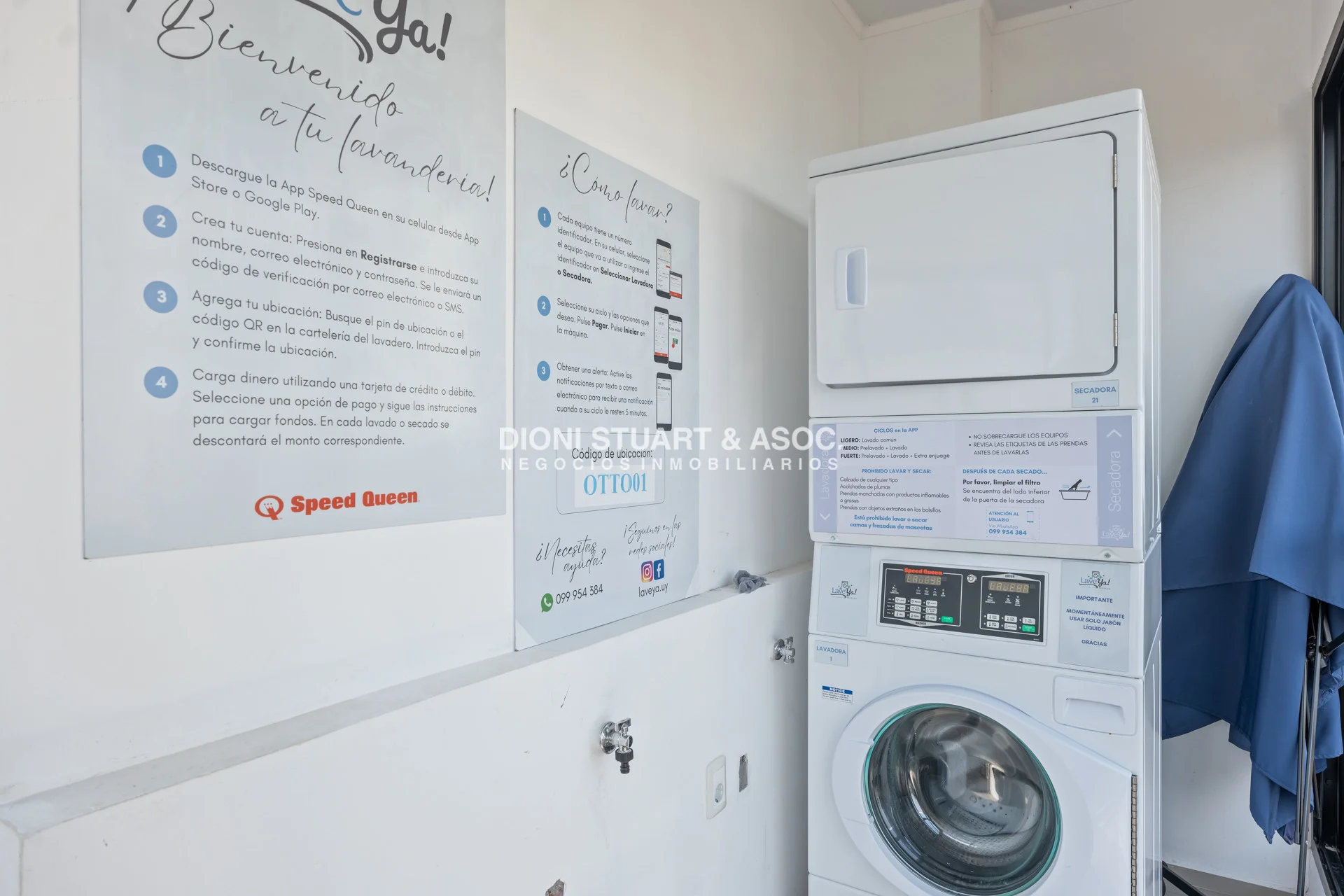 Cuenta con un comodo Lobby bien decorado, salon de usos multiples con TV y sofa, Ascensor de alta velocidad y en el ultimo piso una piscina y barbacoa con vistas panoramicas a toda la ciudad. A demás Laundry con lavarropas y secarropas.