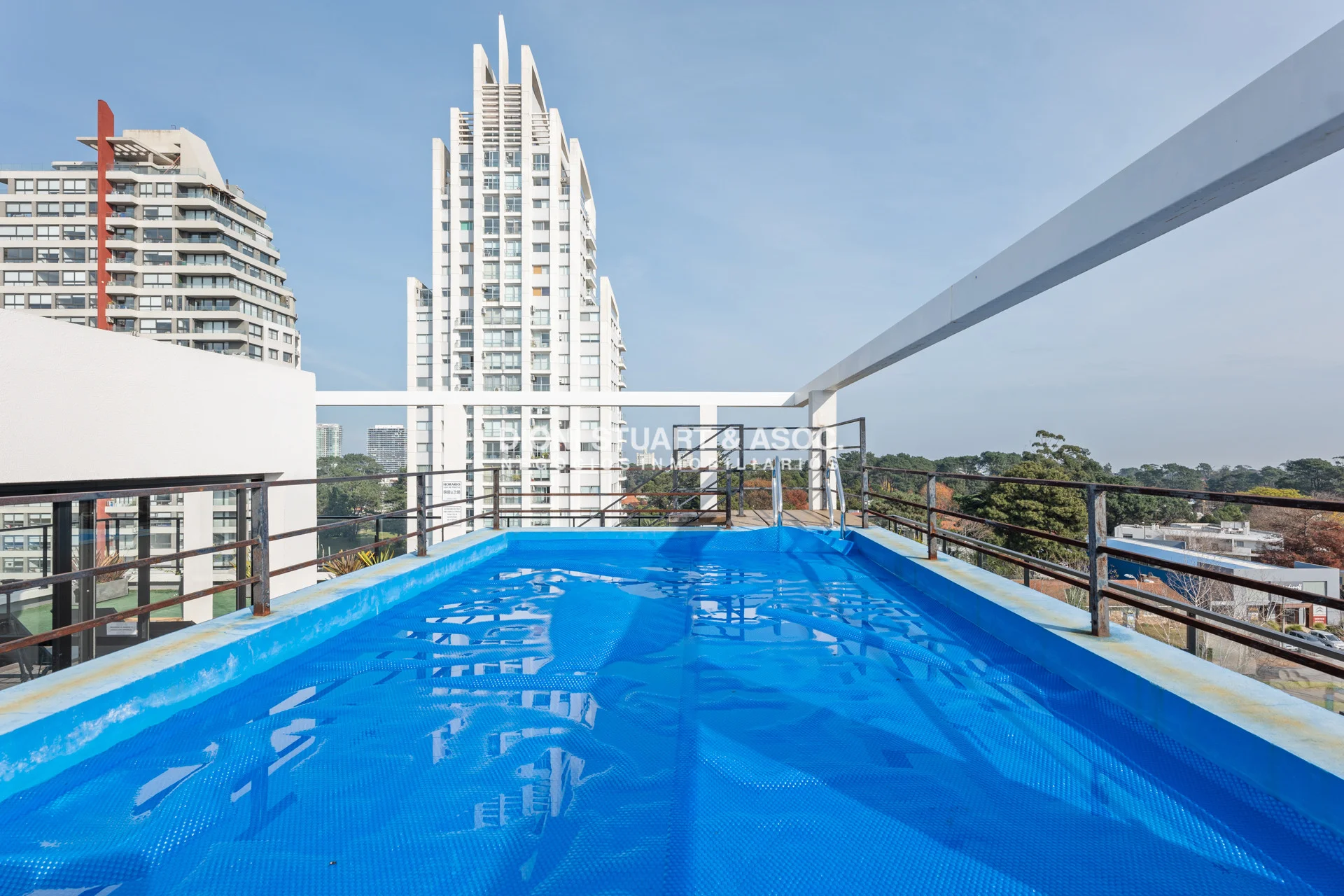 Cuenta con un comodo Lobby bien decorado, salon de usos multiples con TV y sofa, Ascensor de alta velocidad y en el ultimo piso una piscina y barbacoa con vistas panoramicas a toda la ciudad. A demás Laundry con lavarropas y secarropas.