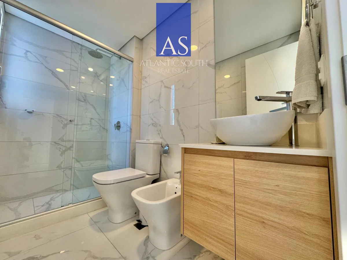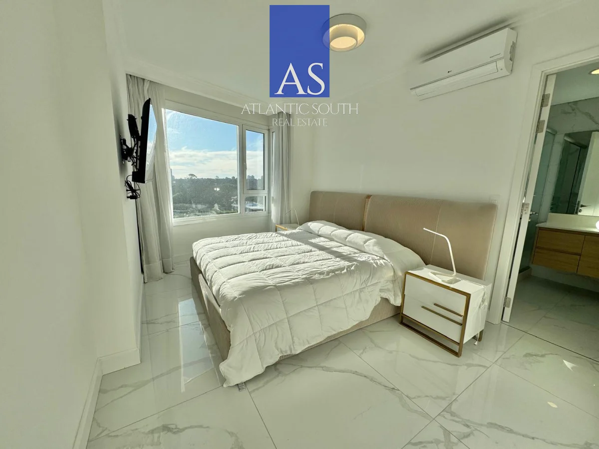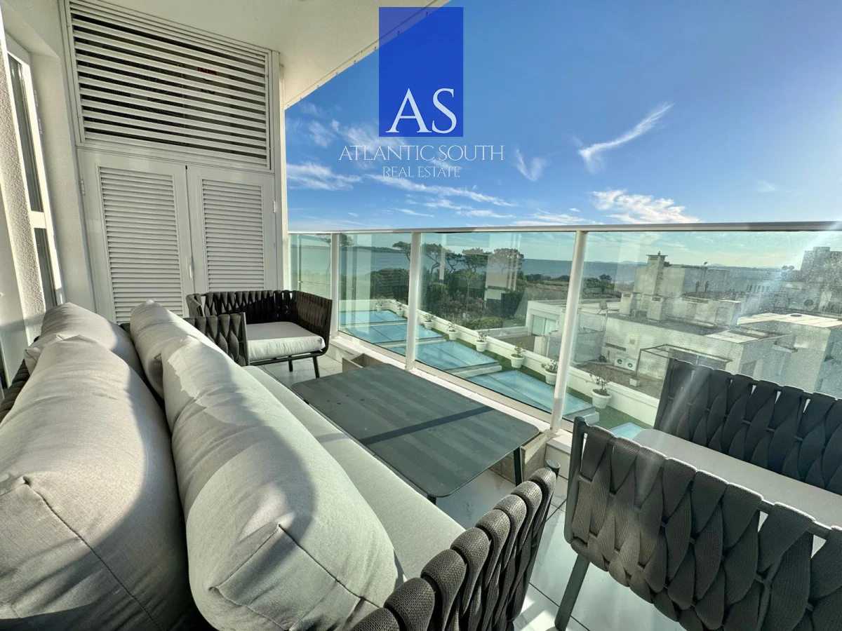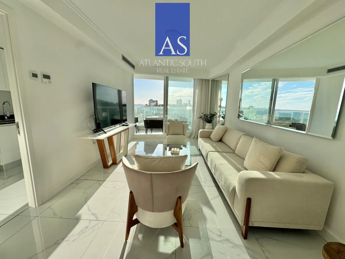 Apartamento de dos dormitorios uno suite mas toilette social, palier privado con ocho ascensores de gran velocidad, la ubicación del edificio en primera linea frente al mar ofrece una vista totalmente panorámica de la Playa Mansa.