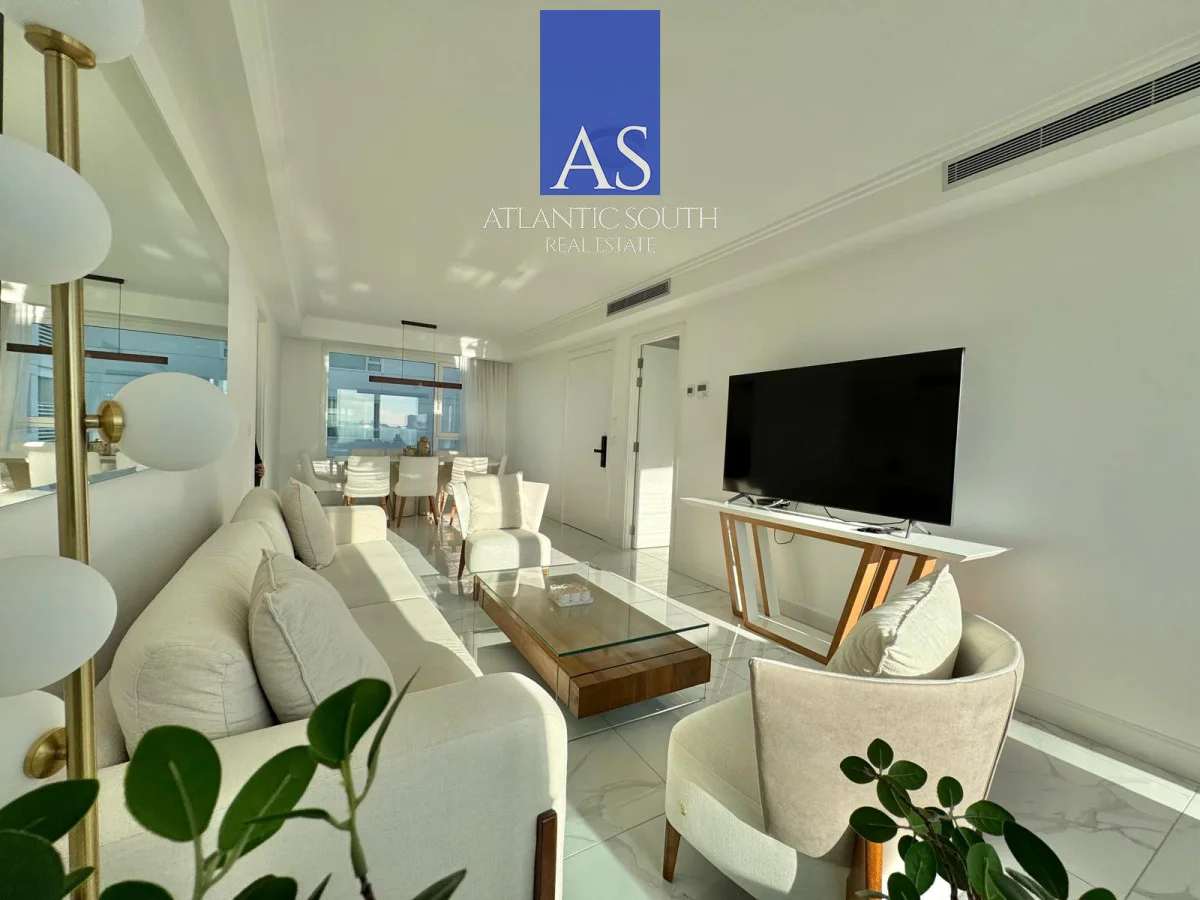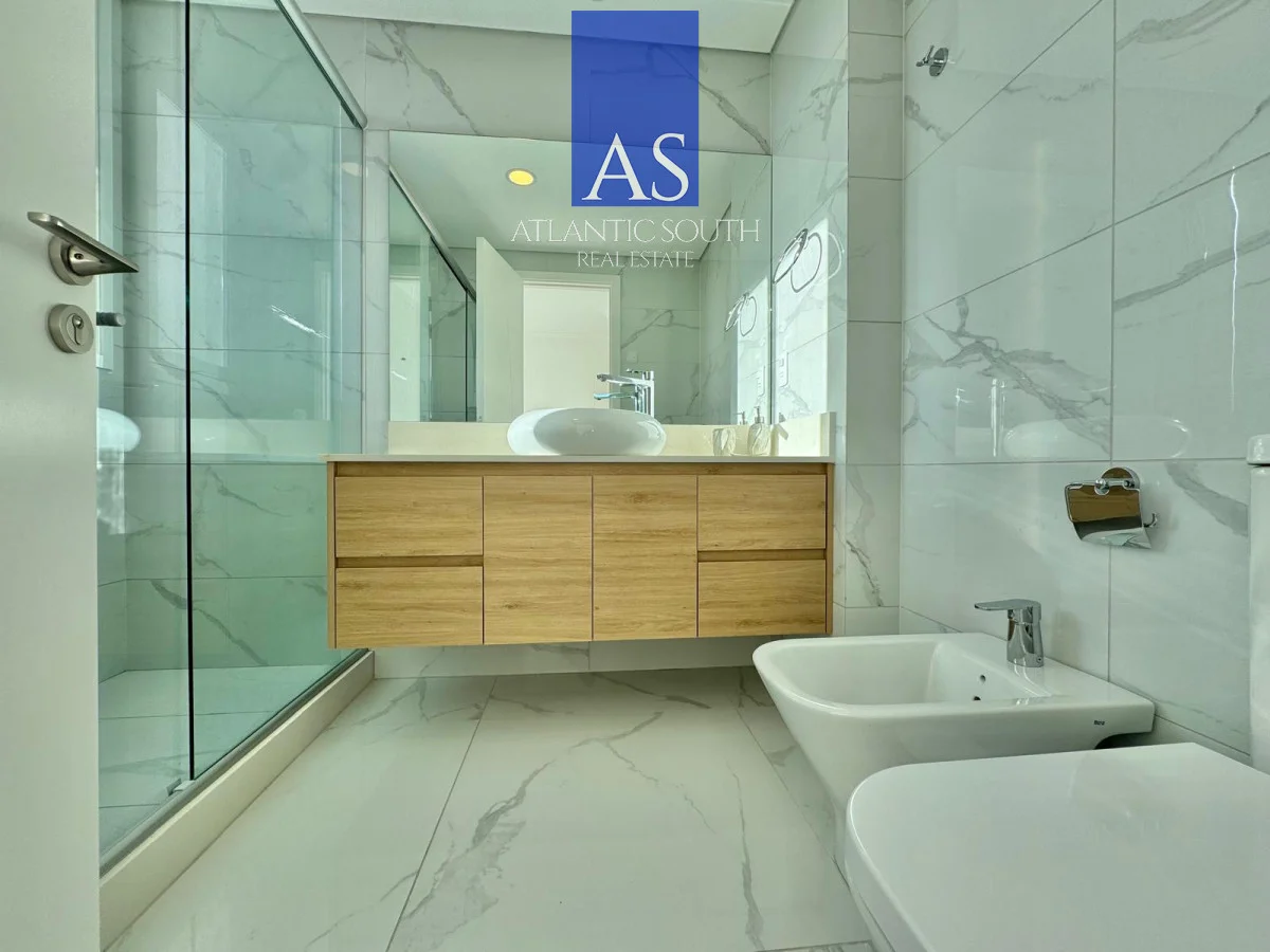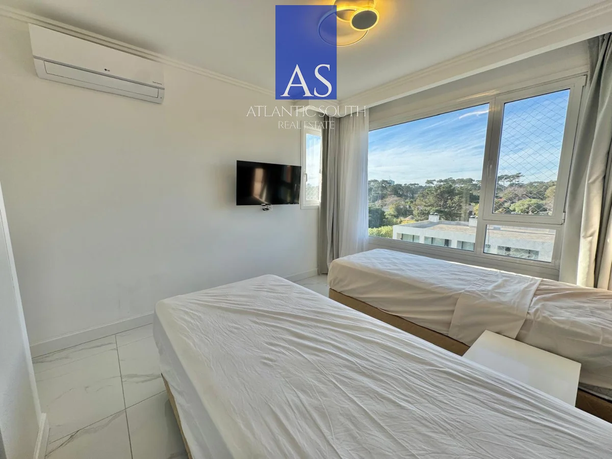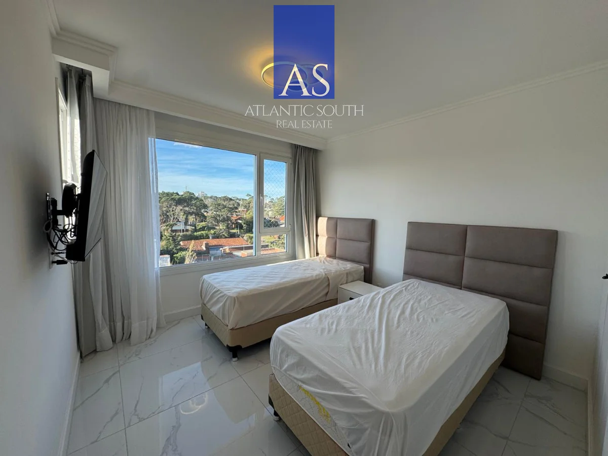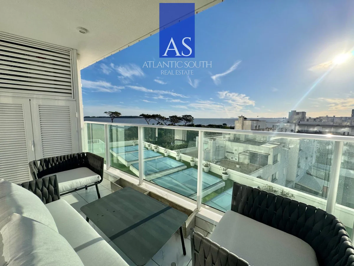 Apartamento de dos dormitorios uno suite mas toilette social, palier privado con ocho ascensores de gran velocidad, la ubicación del edificio en primera linea frente al mar ofrece una vista totalmente panorámica de la Playa Mansa.