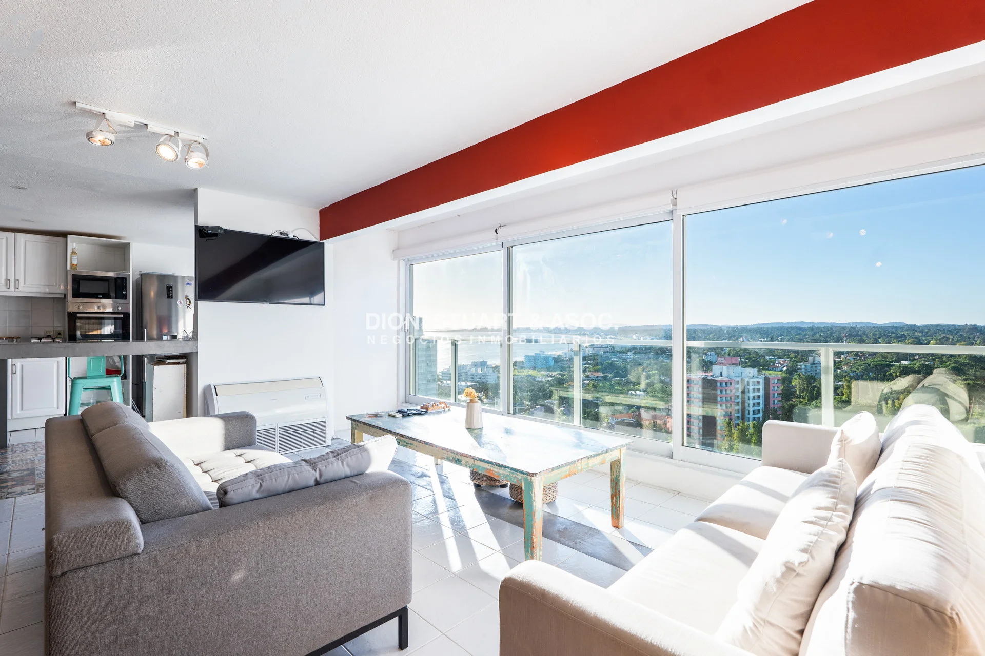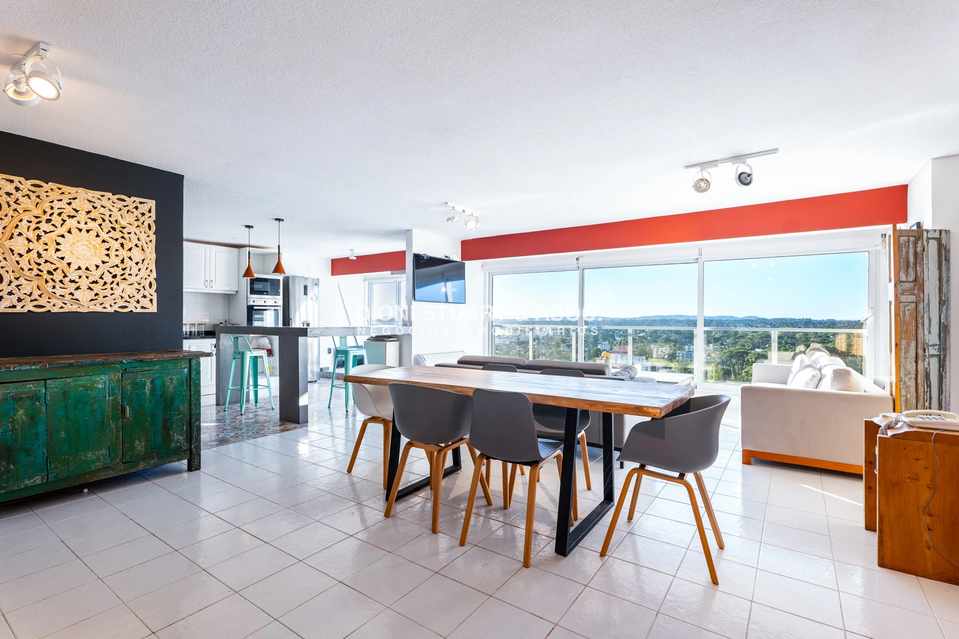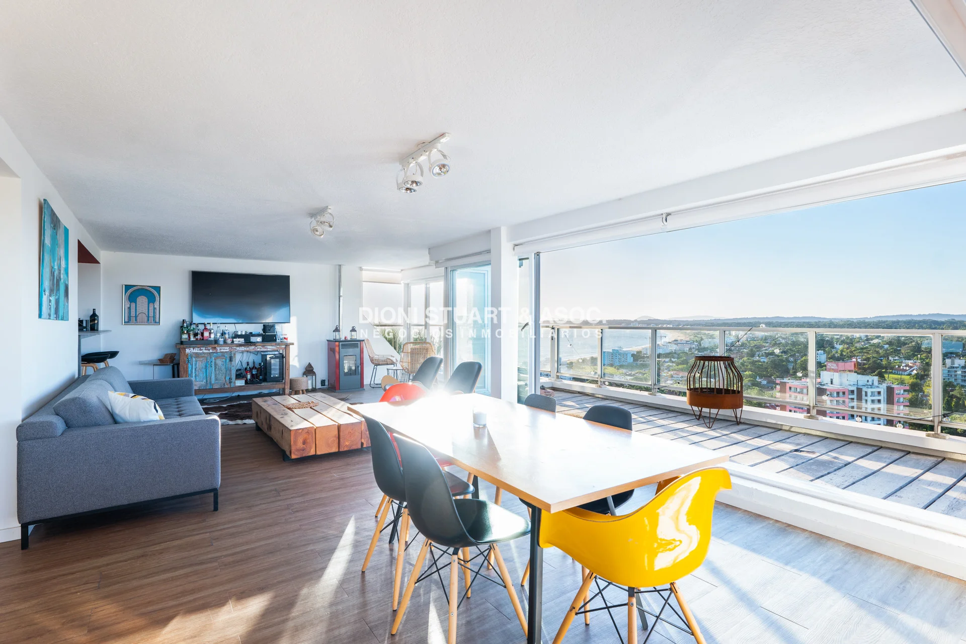 Presentamos este magnifico departamento ubicado en la Torre Wilson del Complejo Lincoln Center, unidad de 220 m2 totales y 174 m2 internos, distribuidos en dos pisos orientado hacia el NorOeste con una vista única a la mansa y Punta Ballena. En planta baja nos encontramos con un amplio living-comedor con una cocina con barra, dos dormitorios, dos baños, y dependencia de servicio con baño. La planta alta es otro departamento más, muy bien distribuido y equipado, con un amplio living comedor una estufa a leña instalada, parrillero, toilette, dos dormitorios (uno en suite), y una amplia terraza en forma de L con grandes sillones desde donde podemos disfrutar de una hermosa vista al mar y al bosque. El departamento cuenta con mejoras realizadas como vidrios DVH, aires acondicionados, rollers automatizados, luminaria nueva, estufa en el segundo nivel, piso vinilico, deck y una pérgola con toldos en la terraza. La unidad cuenta con dos cocheras, una techada y un garage en subsuelo.