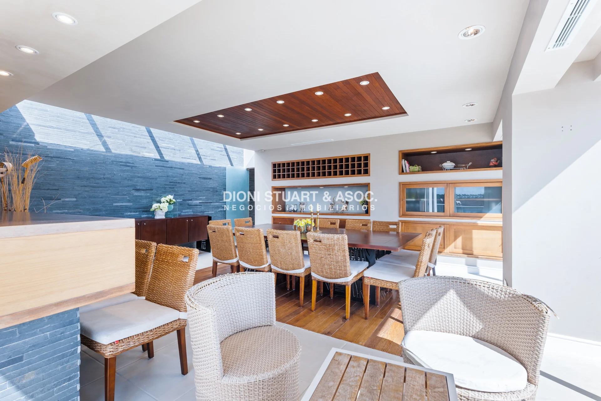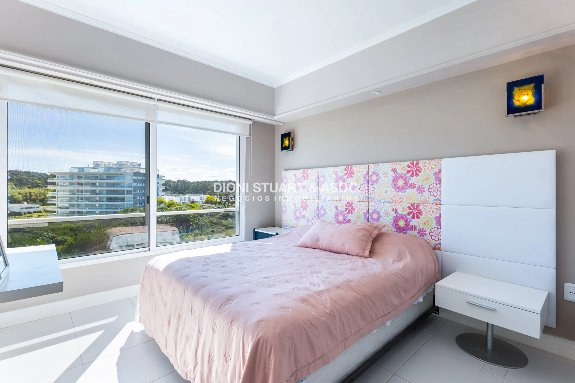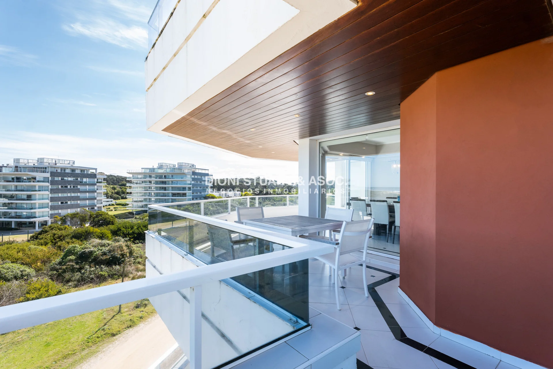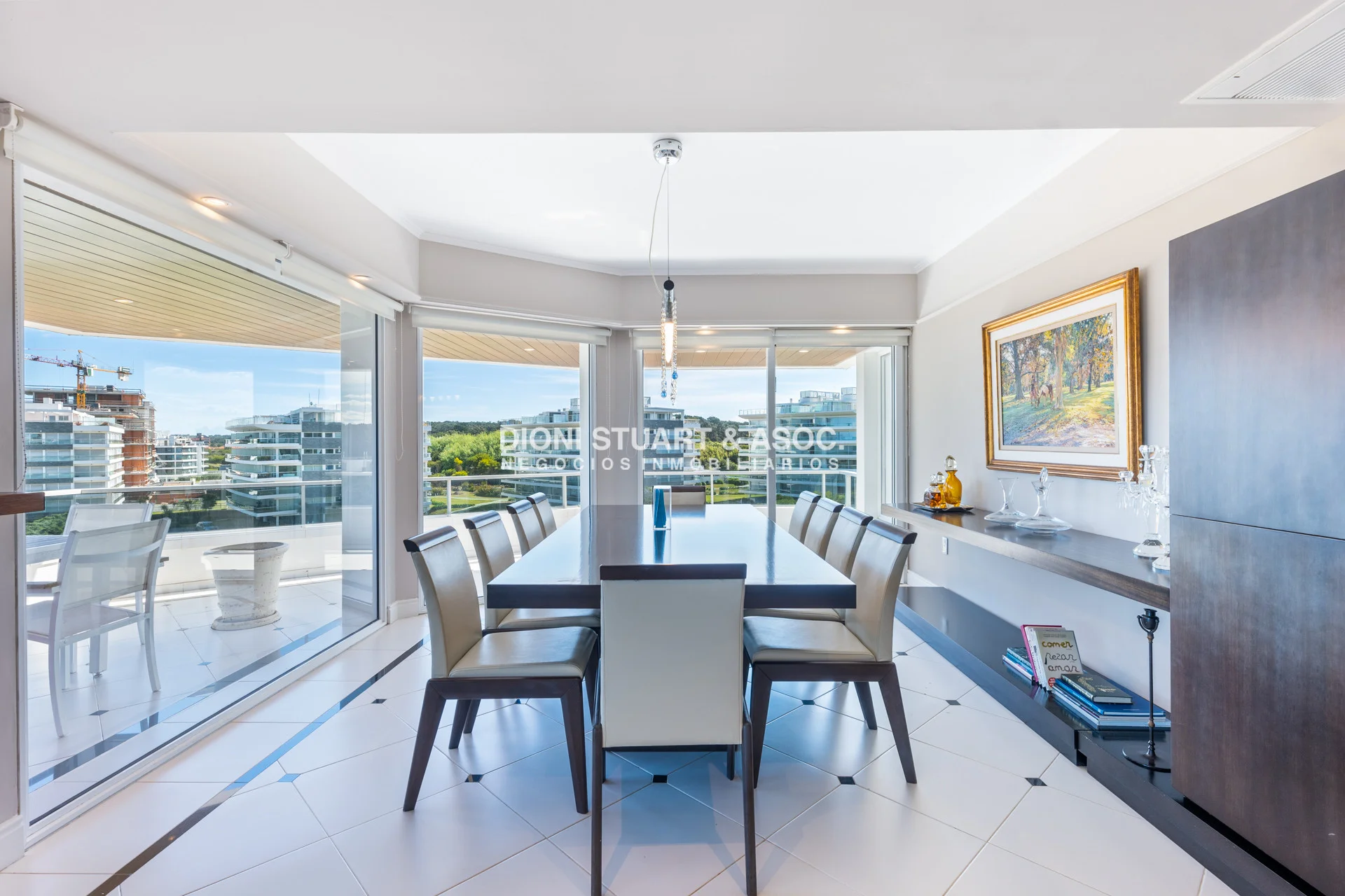 Departamento pent house duplex ubicado en el edificio Aguas Azules en primera linea Playa Brava. La unidad cuenta con un amplio living-comedor con estufa a leña con vistas al océano, cuatro dormitorios (tres en suite), toilette y cocina definida con entrada independiente. En su segundo nivel dispone de una gran barbacoa, amplias terrazas con vista al mar y jacuzzi y un dormitorio con office, vestidor walk-in y doble baño. Como si fuera poco, en planta baja cuenta con un loft completo con baño y cocina para huéspedes.