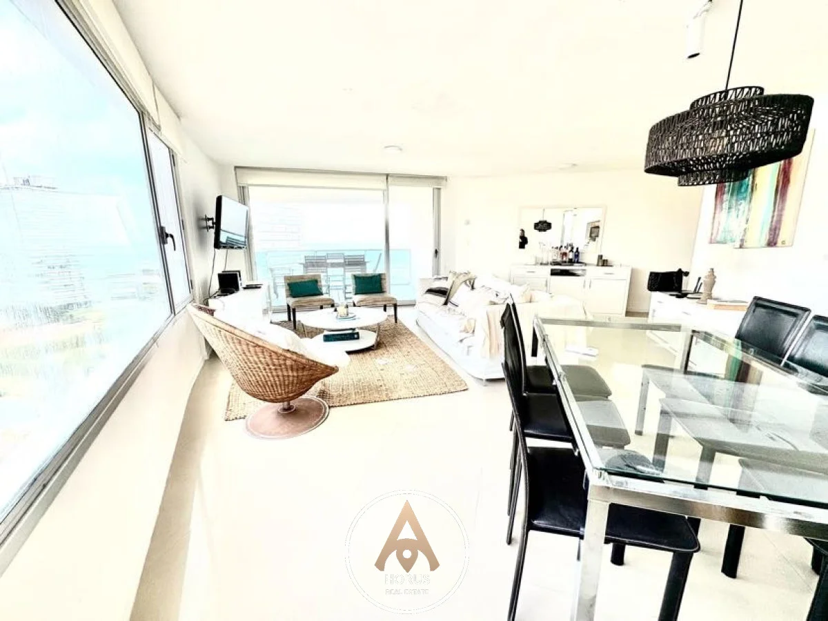 Área Social de Recepción: Un generoso salón-comedor se despliega hacia un balcón principal, creando un espacio de vida fluido donde la brisa marina y las vistas panorámicas al océano son los protagonistas absolutos.