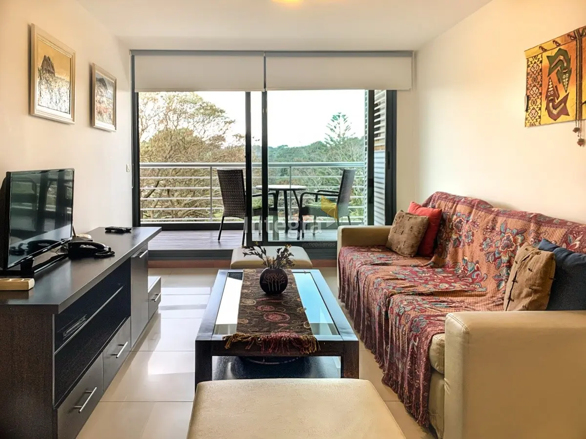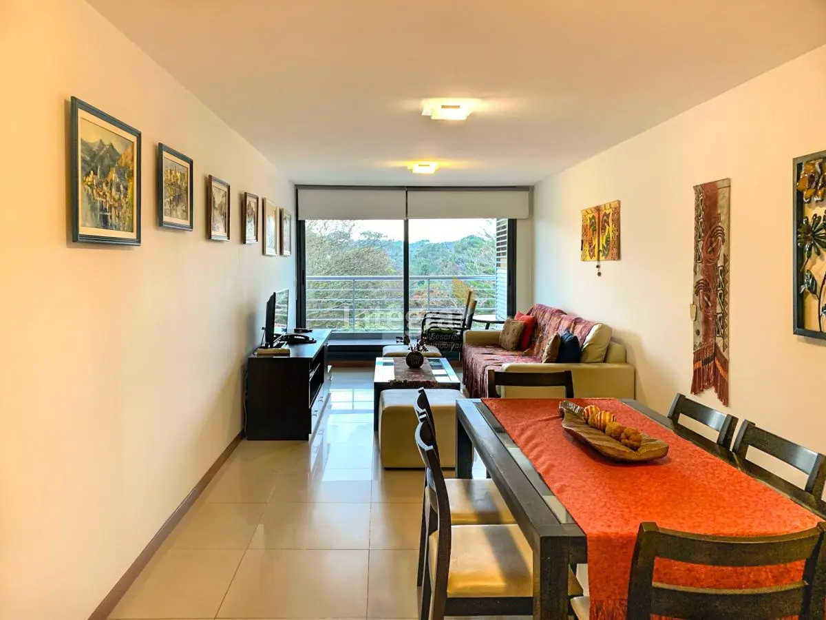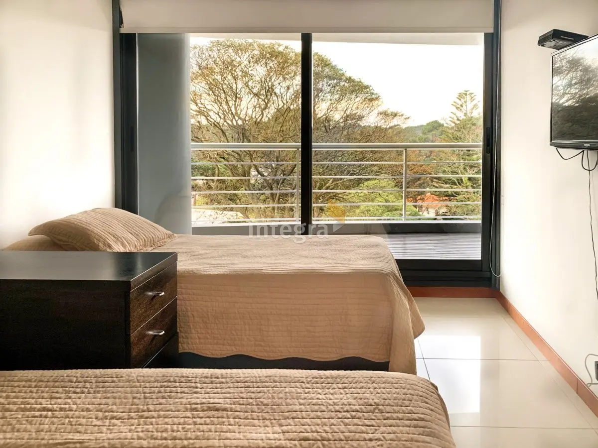 Unidad de 3 ambientes, cuenta con dos dormitorios en suite, toilette, cocina integrada al living, aire acondicionado en todos los ambientes, balcón con vista al bosque. Garaje en subsuelo.