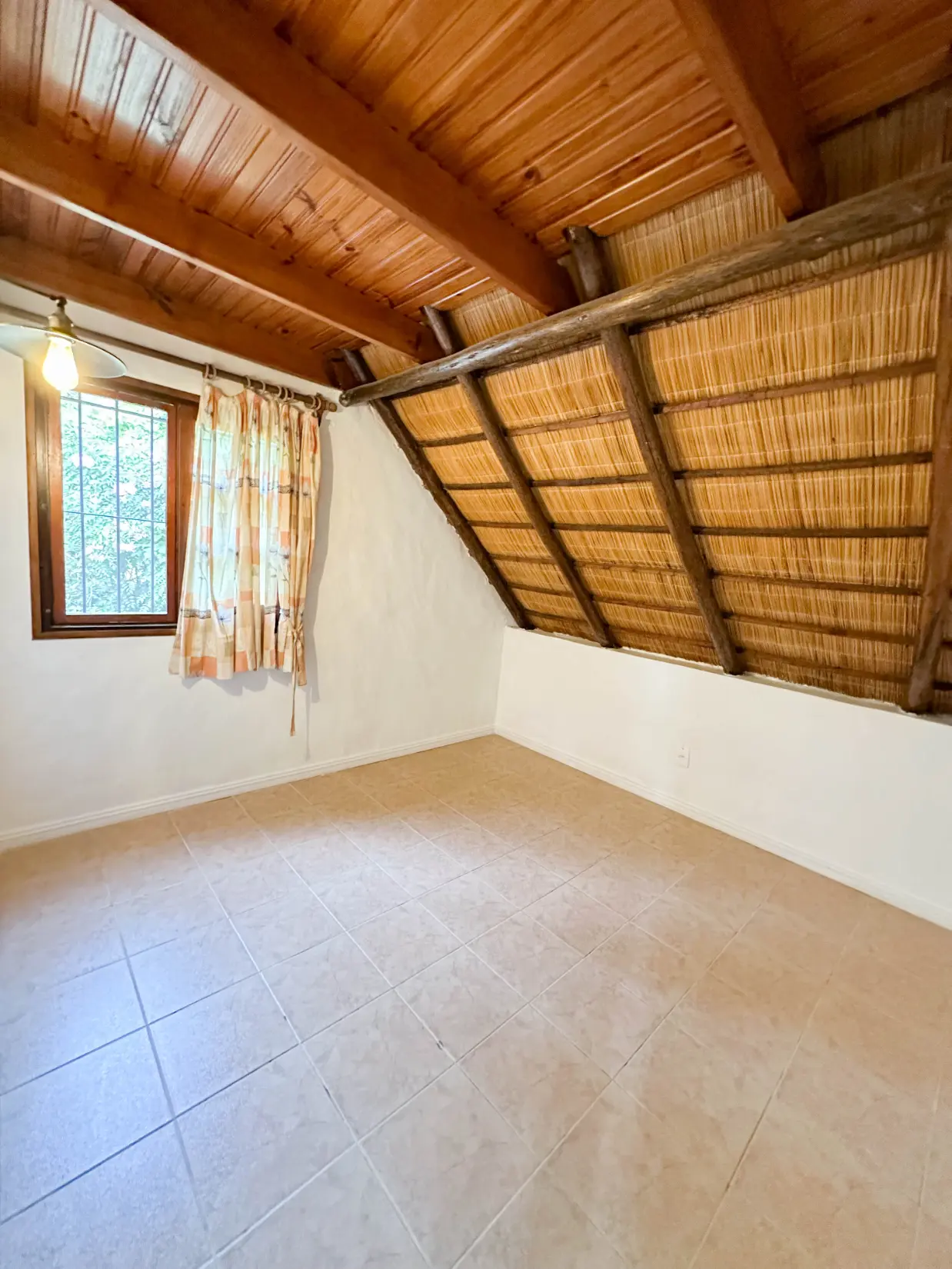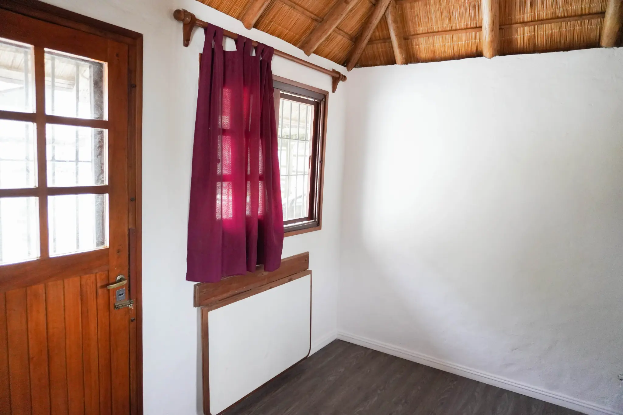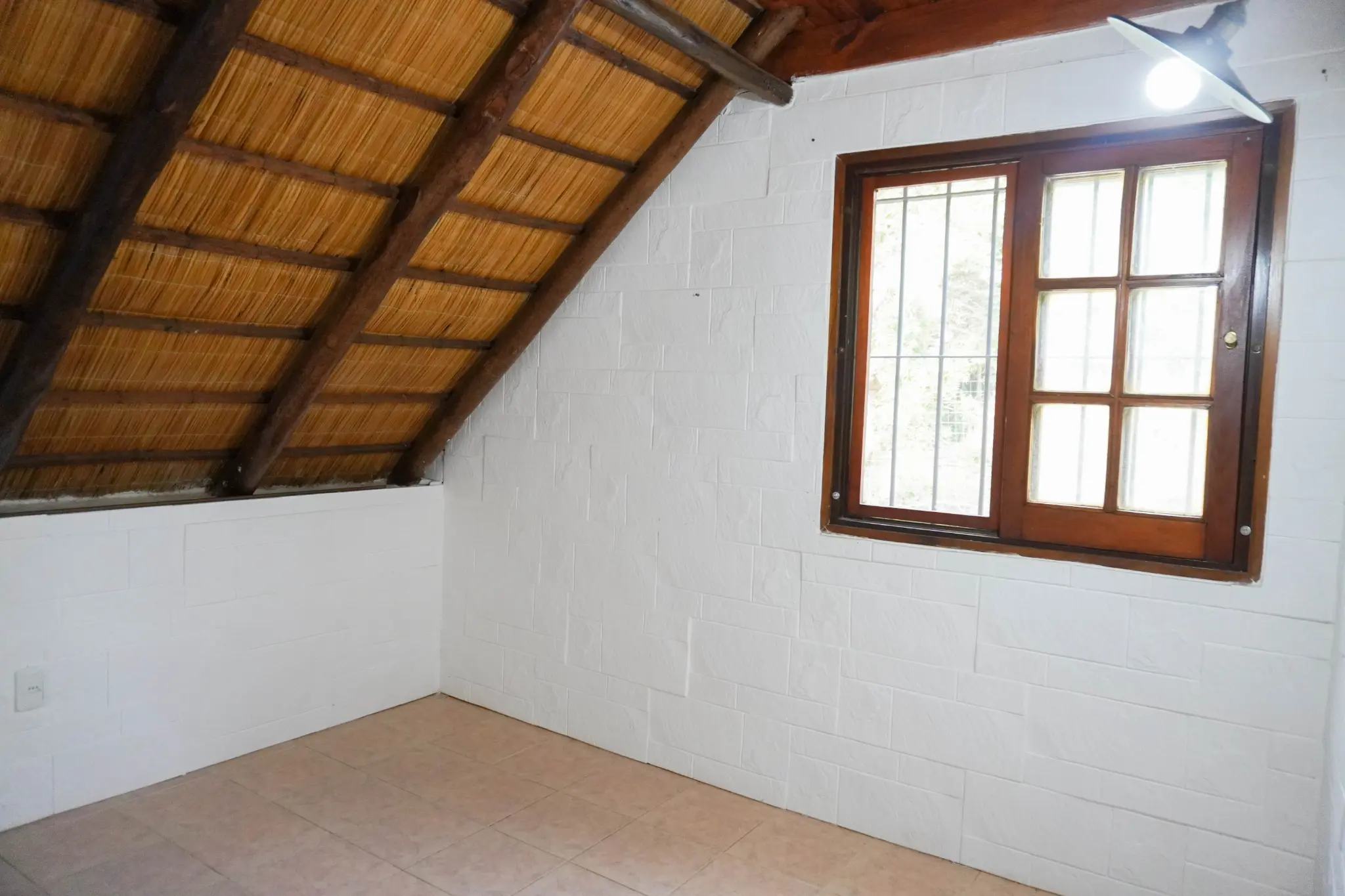Terreno de 500m2, casa equipada con tres dormitorios, baño, living comedor con estufa a leña y altillo donde se encuentra la tercera habitación.
