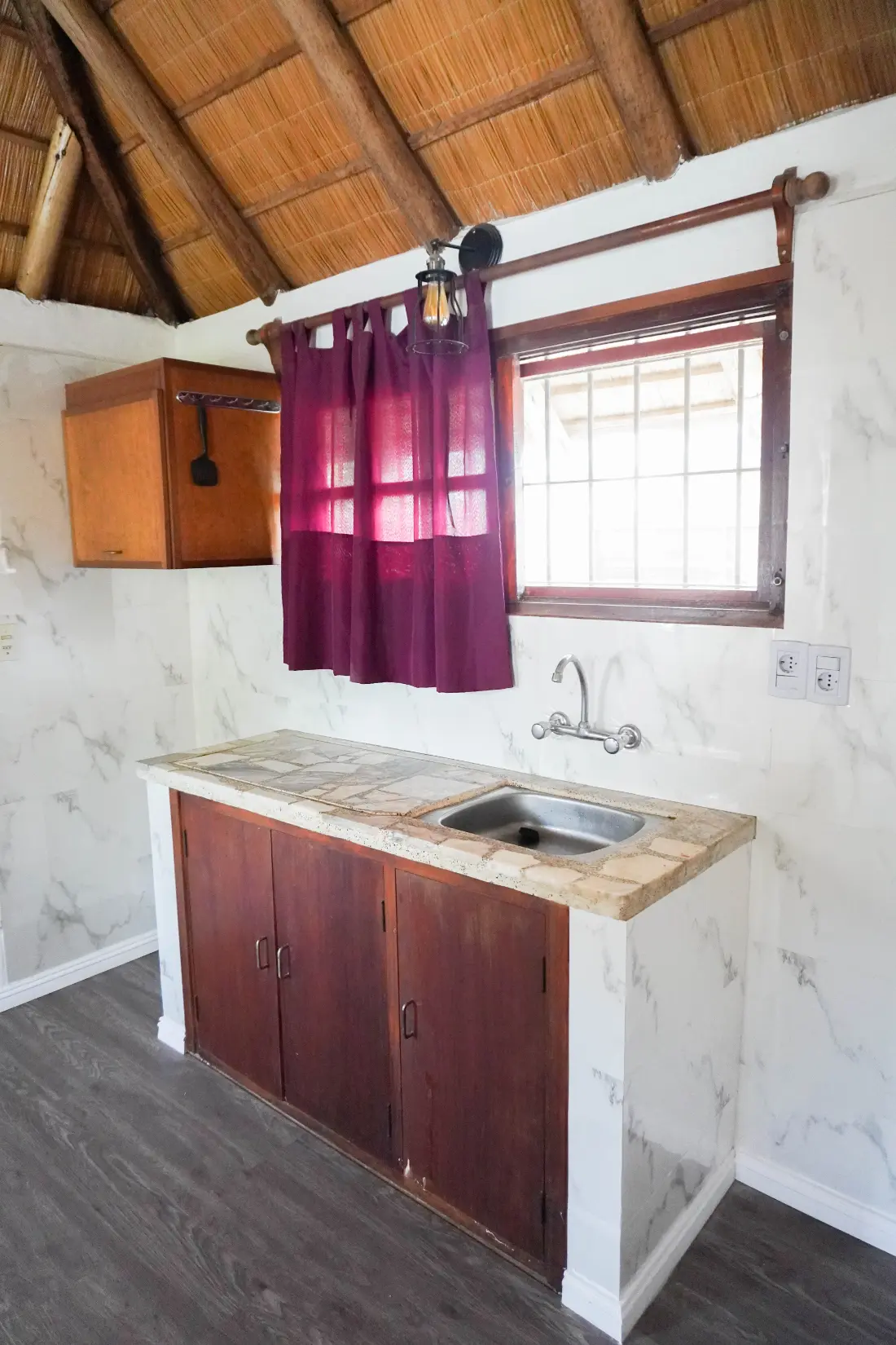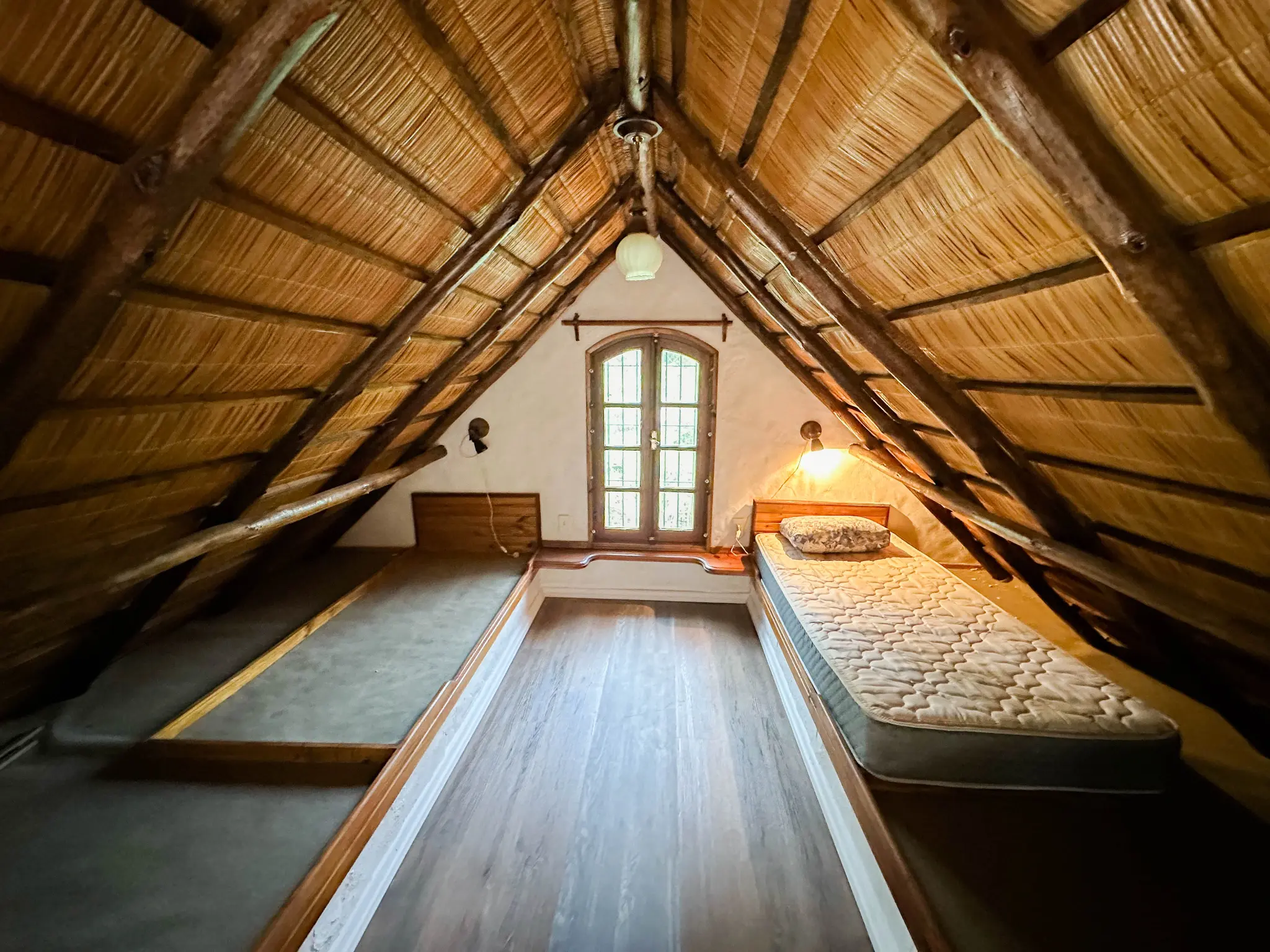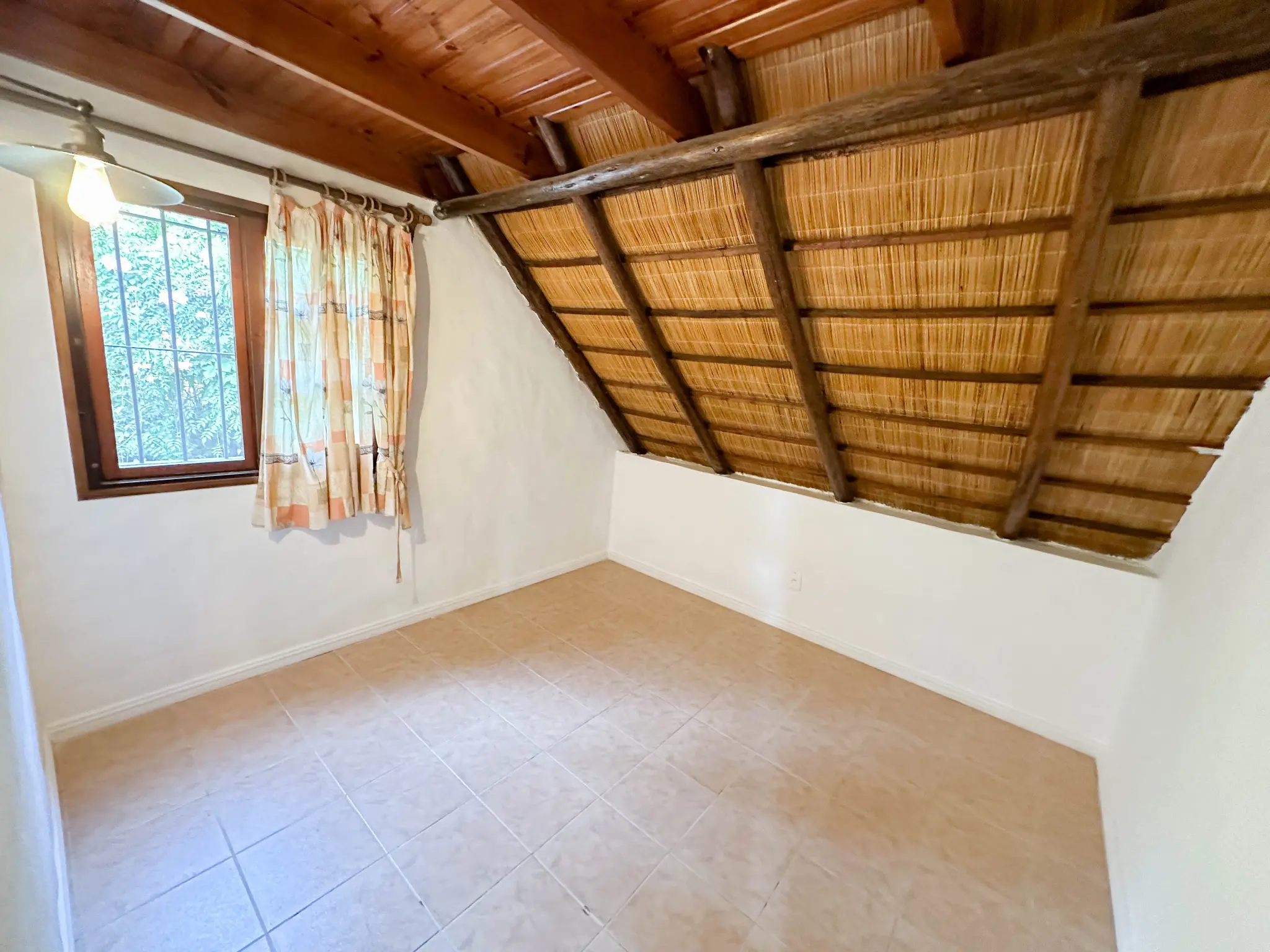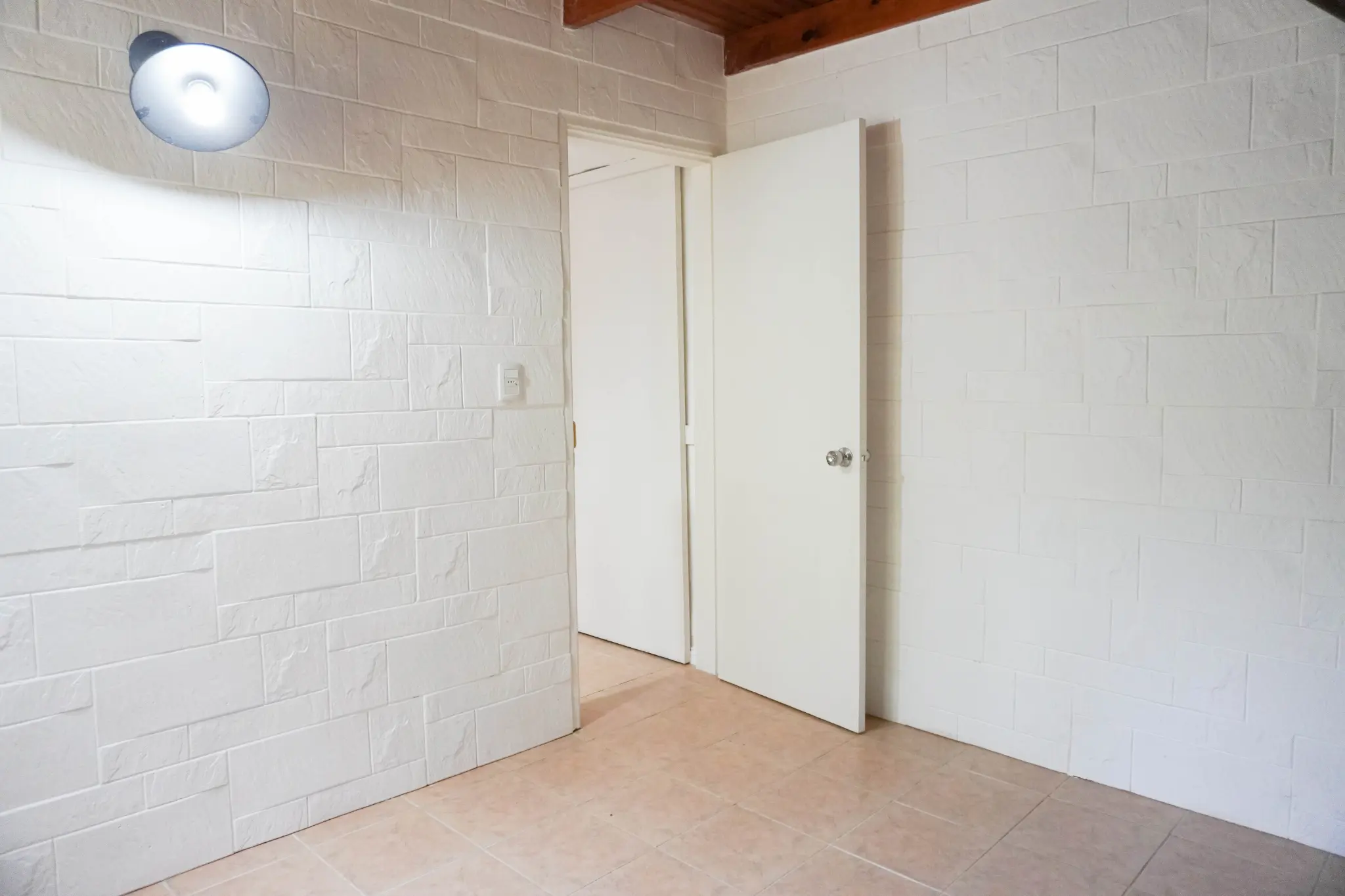 Terreno de 500m2, casa equipada con tres dormitorios, baño, living comedor con estufa a leña y altillo donde se encuentra la tercera habitación.