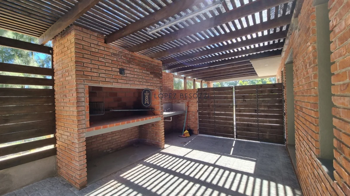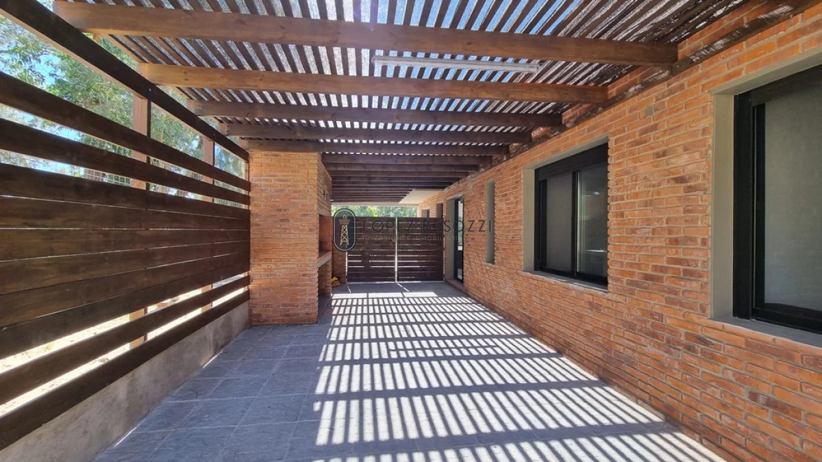 Sobre el lateral dispondrá de parrillero con cubierta en madera de caso, cochera para vehículos y hacia el fondo de la casa, se encuentra la piscina al aire libre y deposito
