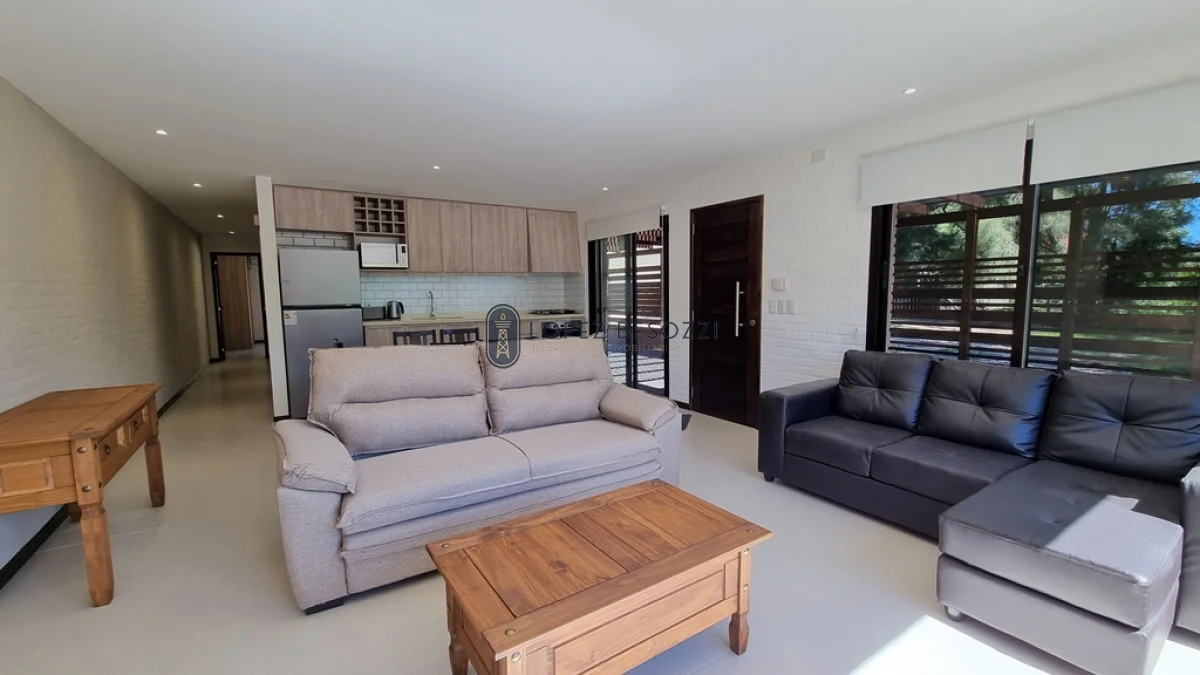 Distribución en un solo nivel contando con amplio living-comedor la cual contará con estufa a leña de alto rendimiento; cocina integrada con muebles a medida (aéreos y bajo mesadas); pasillo de distribución hacia los 3 dormitorios (con placares empotrados a medida) y 2 baños completos
