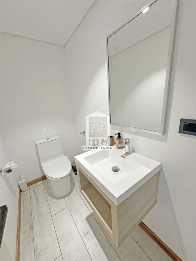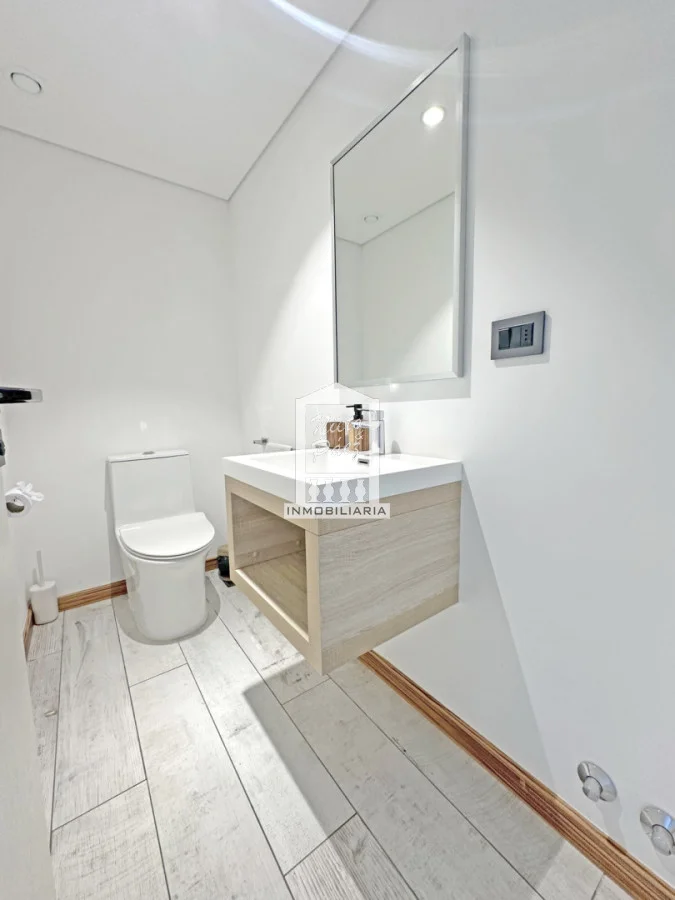 Dispone de toilette de visitas, y un cómodo dormitorio en suite con vestidor, destacándose por sus generosos espacios de guardado. El sistema de aire acondicionado central frío calor asegura confort absoluto durante todo el año.