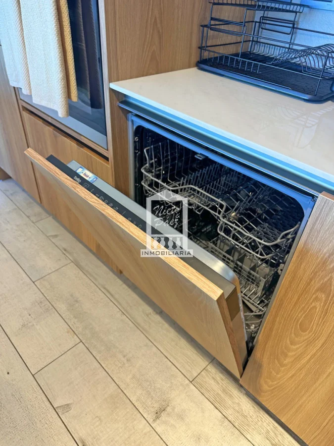 La unidad ofrece un amplio y luminoso living-comedor, integrado a una moderna cocina de diseño, equipada con línea Beko y electrodomésticos empotrados: heladera, freezer y lavavajillas, logrando una estética limpia y funcional.