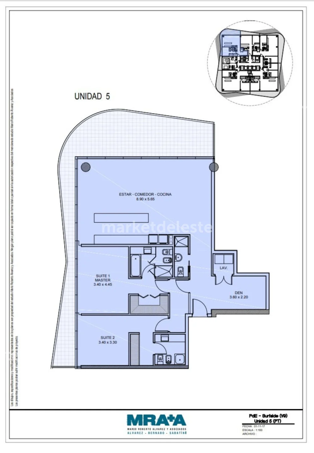 Departamento en el edifico SURFSIDE 1 dormitorios más DEN (estar tv) con 172 mt2 totales y 109 mt2 internos , increíbles terrazas con vistas inigualables