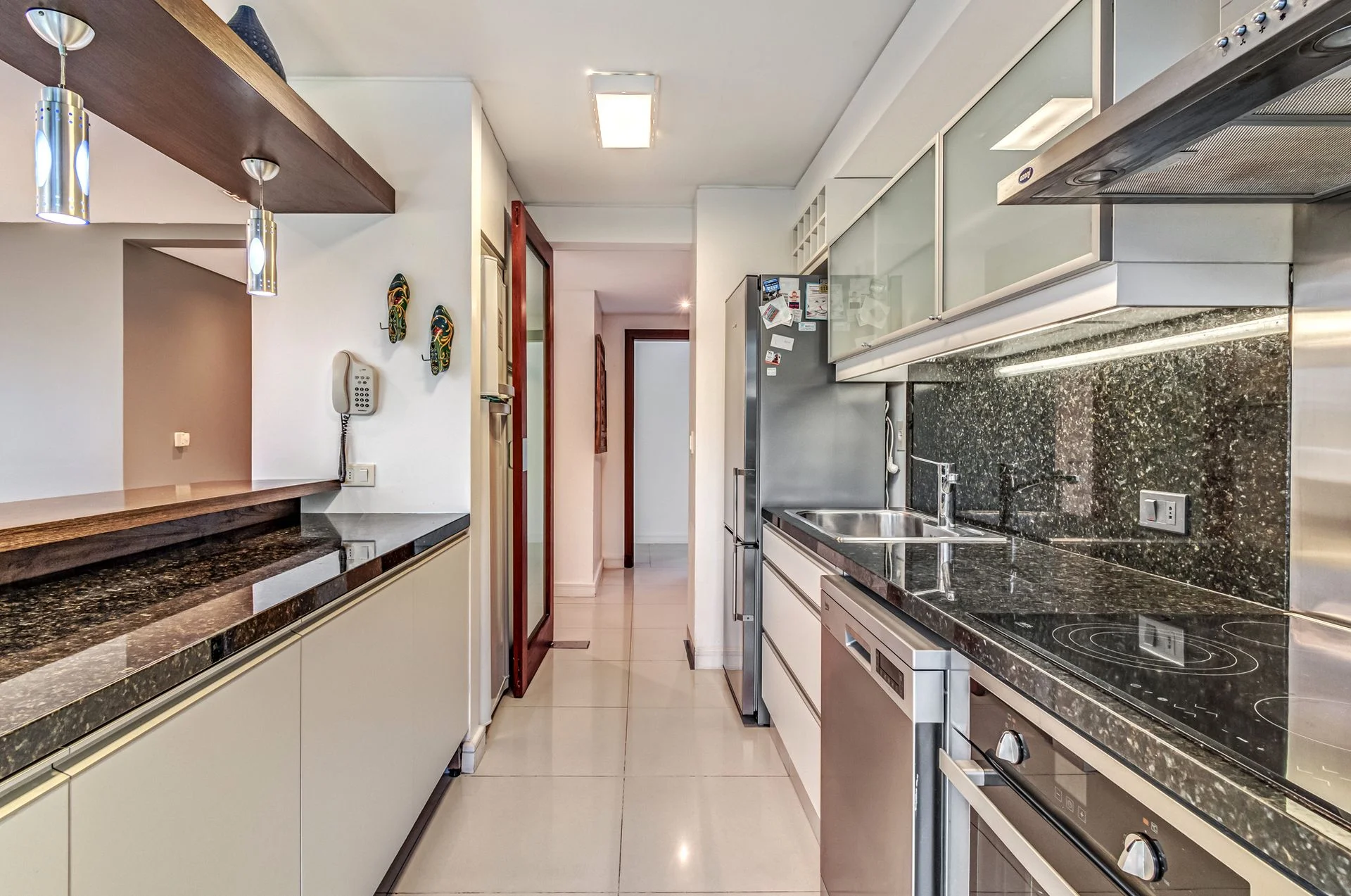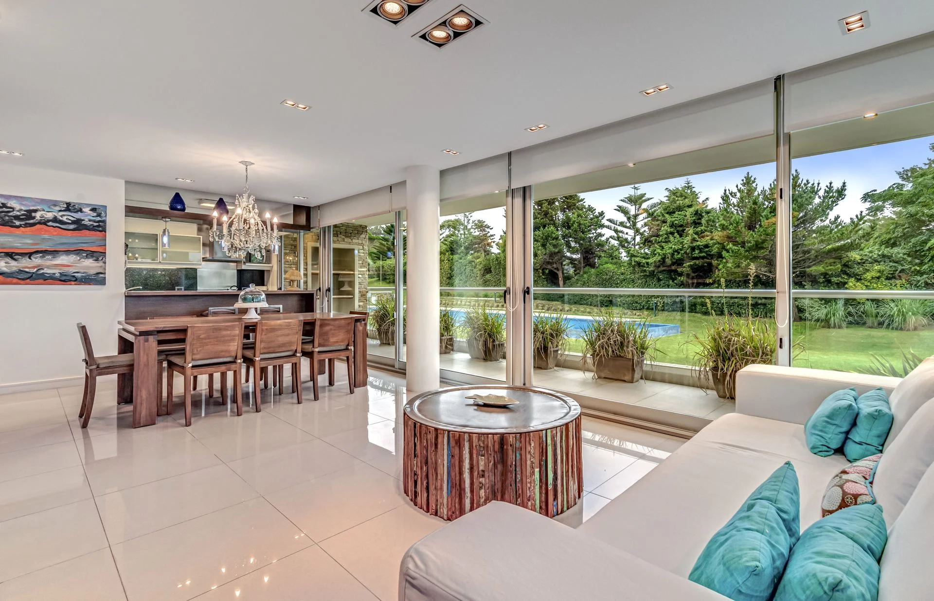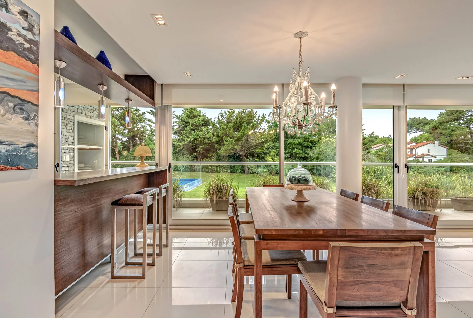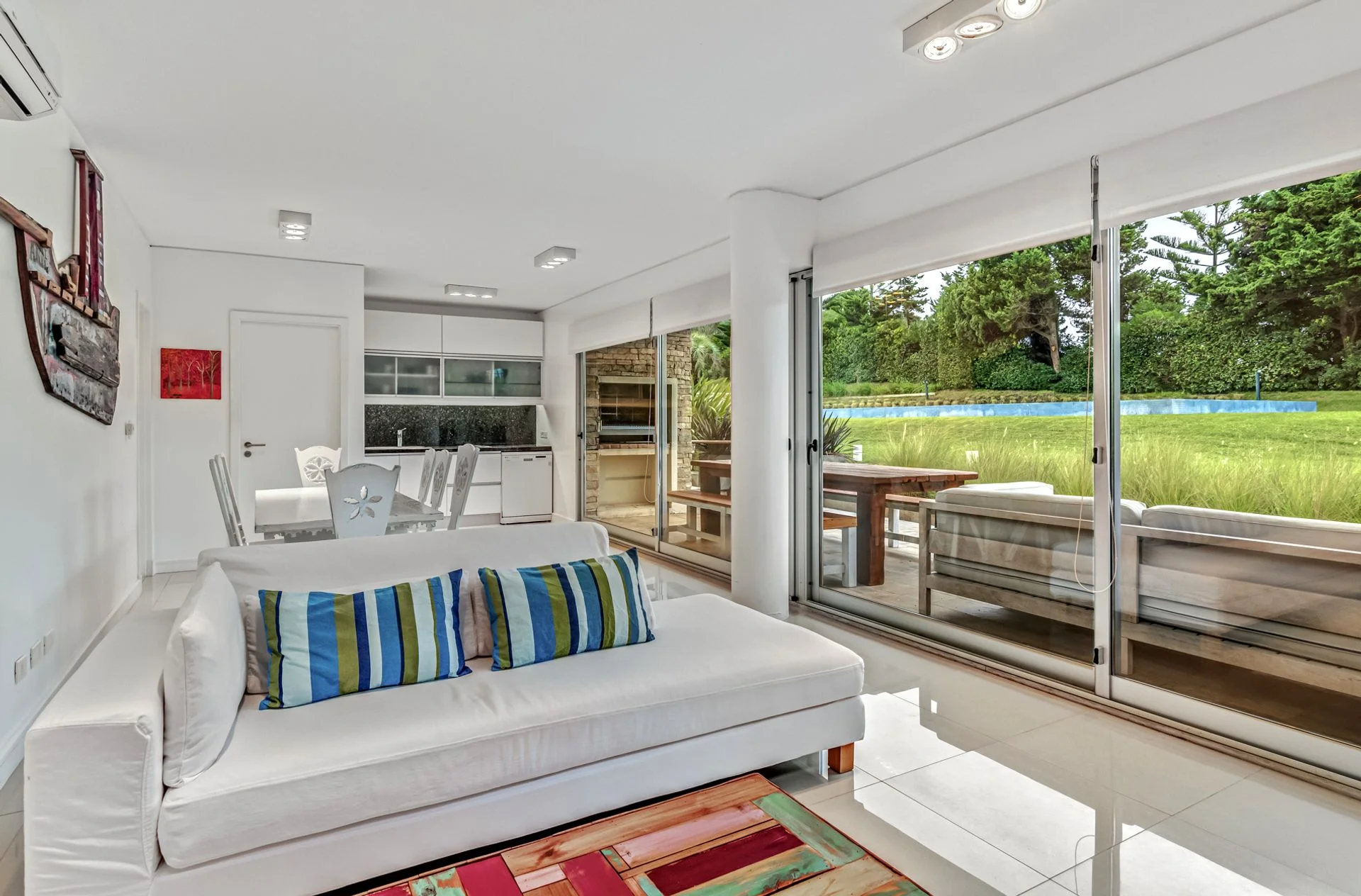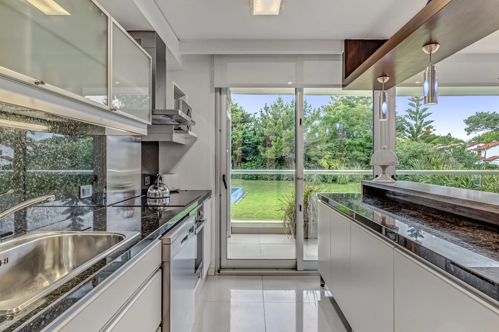 Planta baja: área de tv, comedor con una segunda cocina, laundry con dependencia de servicio, baño completo, parrillero y terraza con salida al jardín.