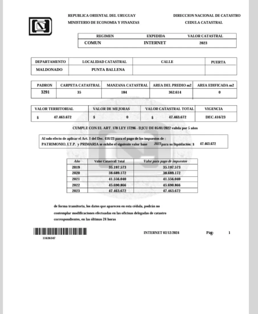 Oportunidad única de inversión en un extenso terreno de 36 hectáreas, ubicado estratégicamente sobre la calle Lago Com, en Solanas. Este terreno, con una superficie total de 362,614 m², ofrece un potencial impresionante para ser loteado en aproximadamente 220 terrenos, lo que representa una excelente oportunidad para desarrolladores y constructores. Su cercanía a la Ruta 12 y al aeropuerto, así como su ubicación frente a Green Park, lo convierten en una opción muy atractiva para proyectos residenciales o comerciales.