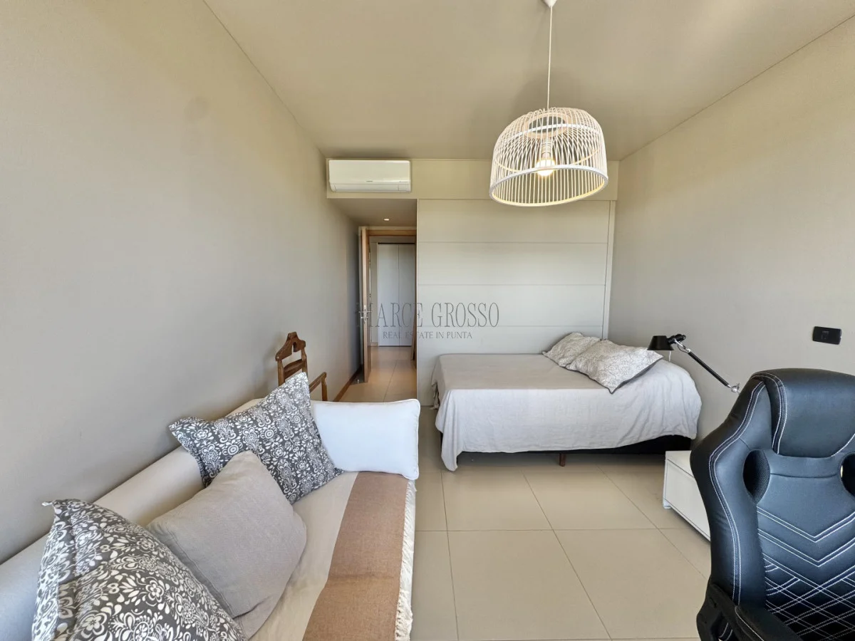 Espectacular apartamento de más de 250m2. Reformado, se accede directamente desde el ascensor a la unidad, cocina totalmente hecha a nuevo. Gran living comedor con ventanales de piso a techo que ofrecen una incomparable vista, terraza abierta con vista al mar, 3 amplias suites + dependencia de servicio con baño, toilette de visitas, terraza contrafrente con gran espacio de estar y relax y parrilla propia, playroom/sala de TV, cómoda cocina con comedor diario, lavadero. Losa radiante, cortinas eléctricas y encantadora decoración.