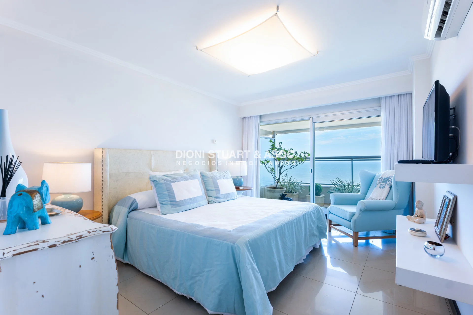 Se distribuye en tres cómodos dormitorios en suite, el principal orientado al frente con vista al mar, walk-in closet y baño con hidromasaje y ducha. Sus otros dos dormitorios son cómodos, tienen placares empotrados, y uno de ellos terraza balcón propia.