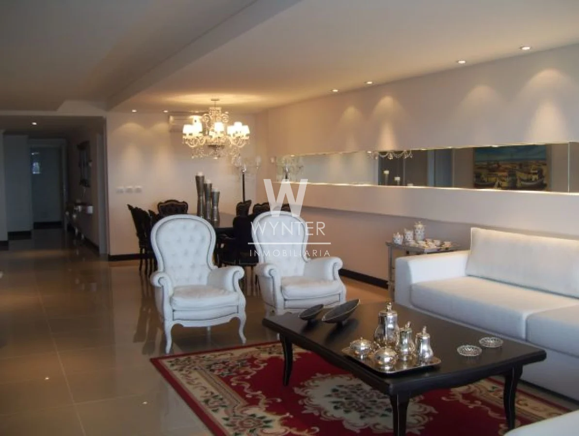 Torre en primera fila, cómodo apartamento de 3 suites más toilette, dependencia de servicio, living-comedor con gran terraza, cocina con lavadero, losa radiante, aire acondicionado, garaje y baulera.