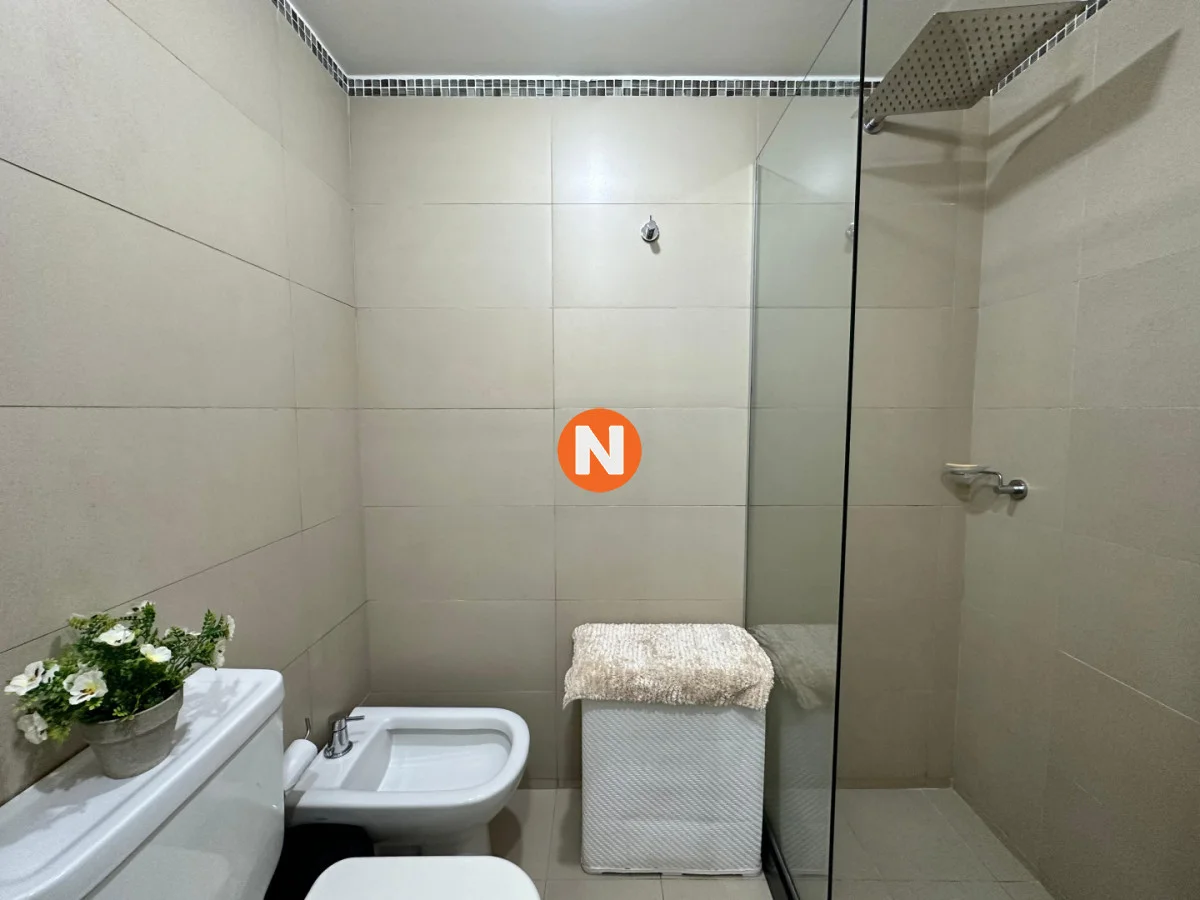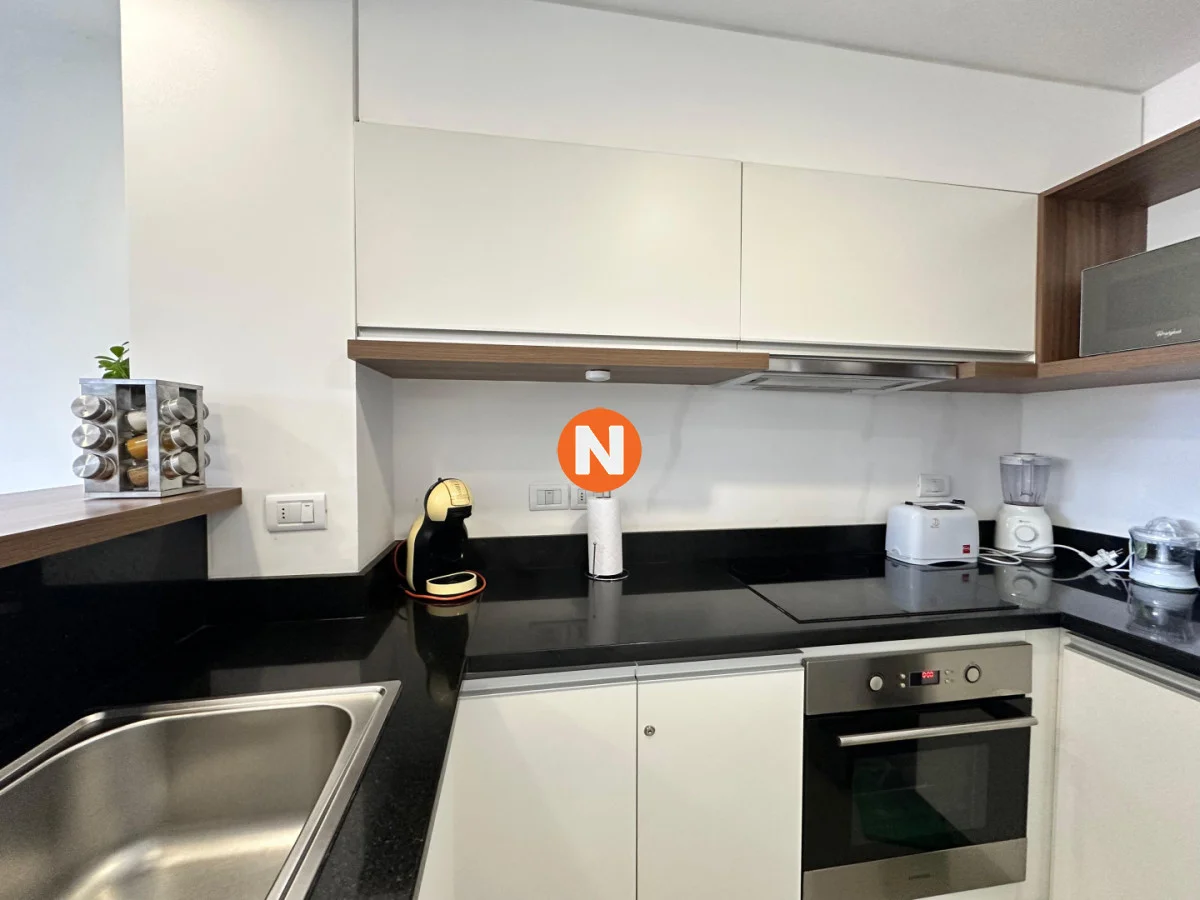El área social se compone de un living-comedor amplio y acogedor, con ventanales que brindan excelente luminosidad natural. La cocina, completamente equipada, dispone de anafe, horno, microondas, heladera con freezer, campana, placard y aire acondicionado, complementando un espacio moderno y práctico. El dormitorio, con placard empotrado, invita al descanso y al confort, mientras que el baño cuenta con bidet y terminaciones de calidad.