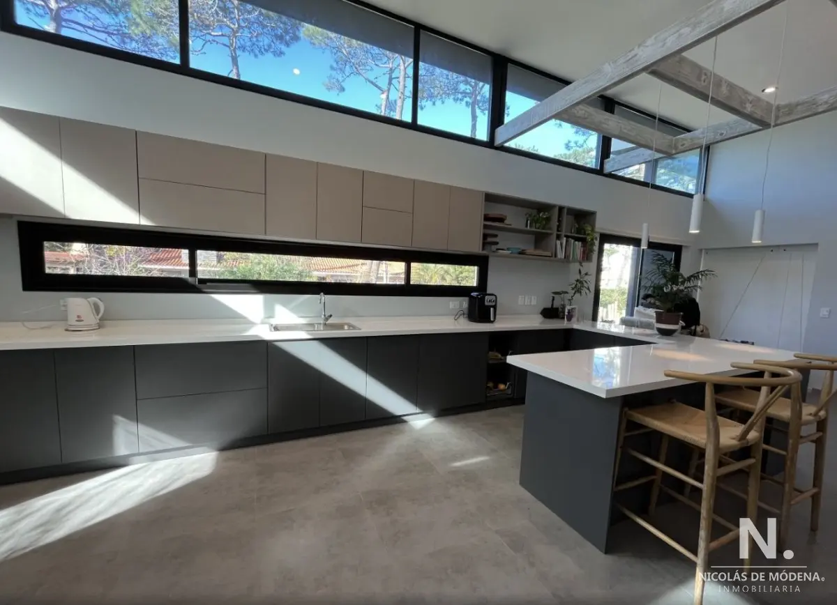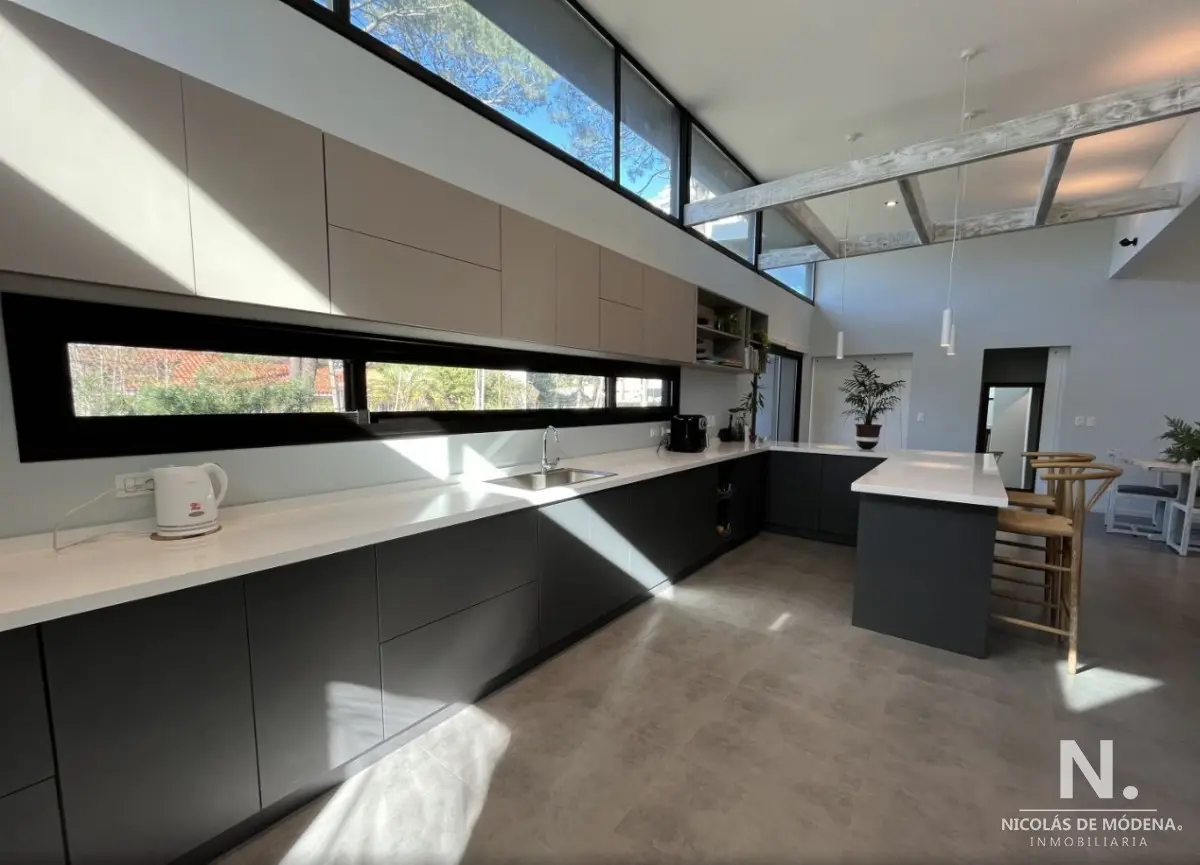 La casa se extiende sobre un terreno de 725 m2, con 151 m2 edificados con un diseño arquitectónico que combina elegancia y funcionalidad. La cocina, el living y el comedor se fusionan en un espacio abierto, creando un ambiente perfecto para reuniones familiares o entretenimiento.