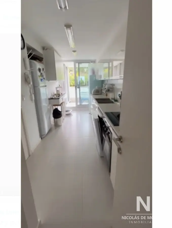 La cocina está completamente equipada con todo lo necesario para cocinar deliciosas comidas, incluyendo anafe, microondas, lavavajillas, heladera con freezer, campana extractora, horno y placares amplios. El espacioso living, el comedor y el living comedor ofrecen un ambiente elegante y cómodo para relajarse y disfrutar de la brisa marina y las vistas impresionantes.