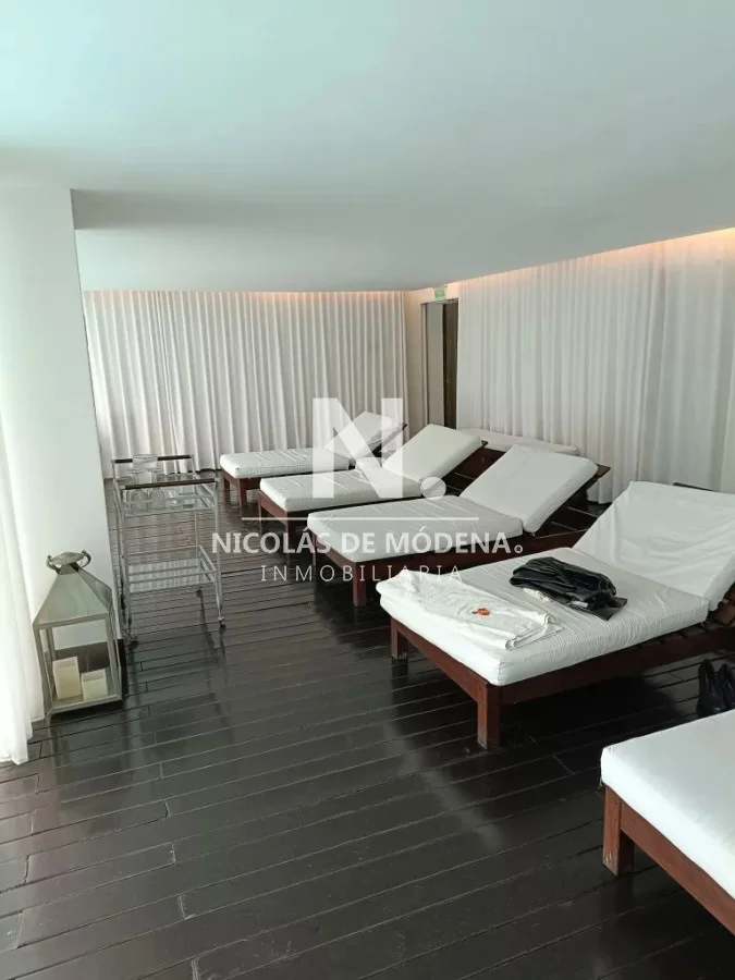 Piso alto apto de dormitorio y medio con amplia terraza y hermosa vista. Con Garage La planta ofrece amplios y luminosos ambientes Se compone de la siguiente manera: Living comedor Amplísima terraza Cocina totalmente equipada 1 dormitorio y medio (definido) 1baño 1 garage Aire acondicionado Agua caliente central Calefacción losa radiante 1 garage Amenites: Piscina exterior climatizada Piscina interior climatizada SPA compuesto de: Sauna seco y húmedo Espacio de relax y masajes Peluquería Jardín interior Gym con aparatos de ultima generación Meeting Room Salas de juegos para adolescentes y niños Cine Barbacoas Solarium Servicio de mucamas Servicio de lavadero Consulte con nuestros asesores Referencia Interna : Tera-23503