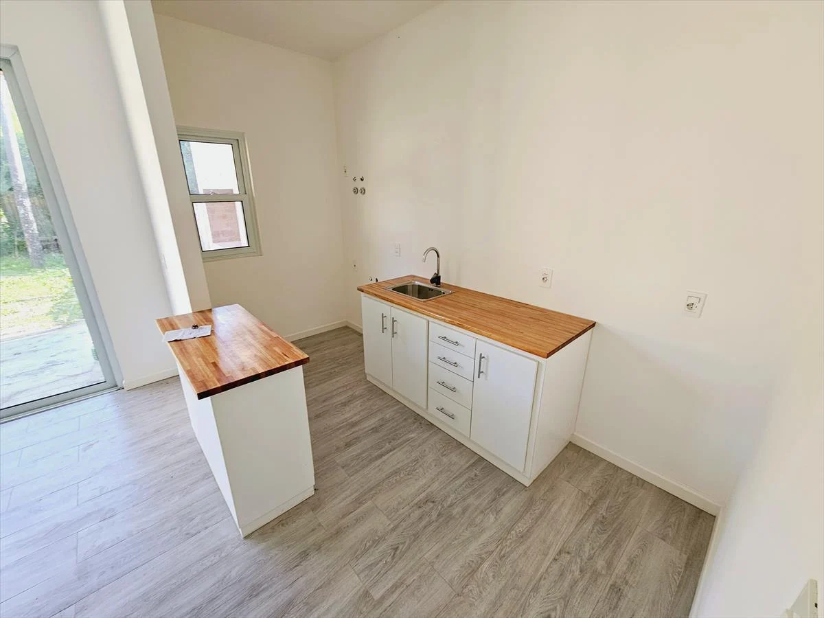 PLANTA BAJA: Dormitorio en suite, cocina semi integrada, estar-comedor con salida a deck con parrillero propio y estacionamiento.