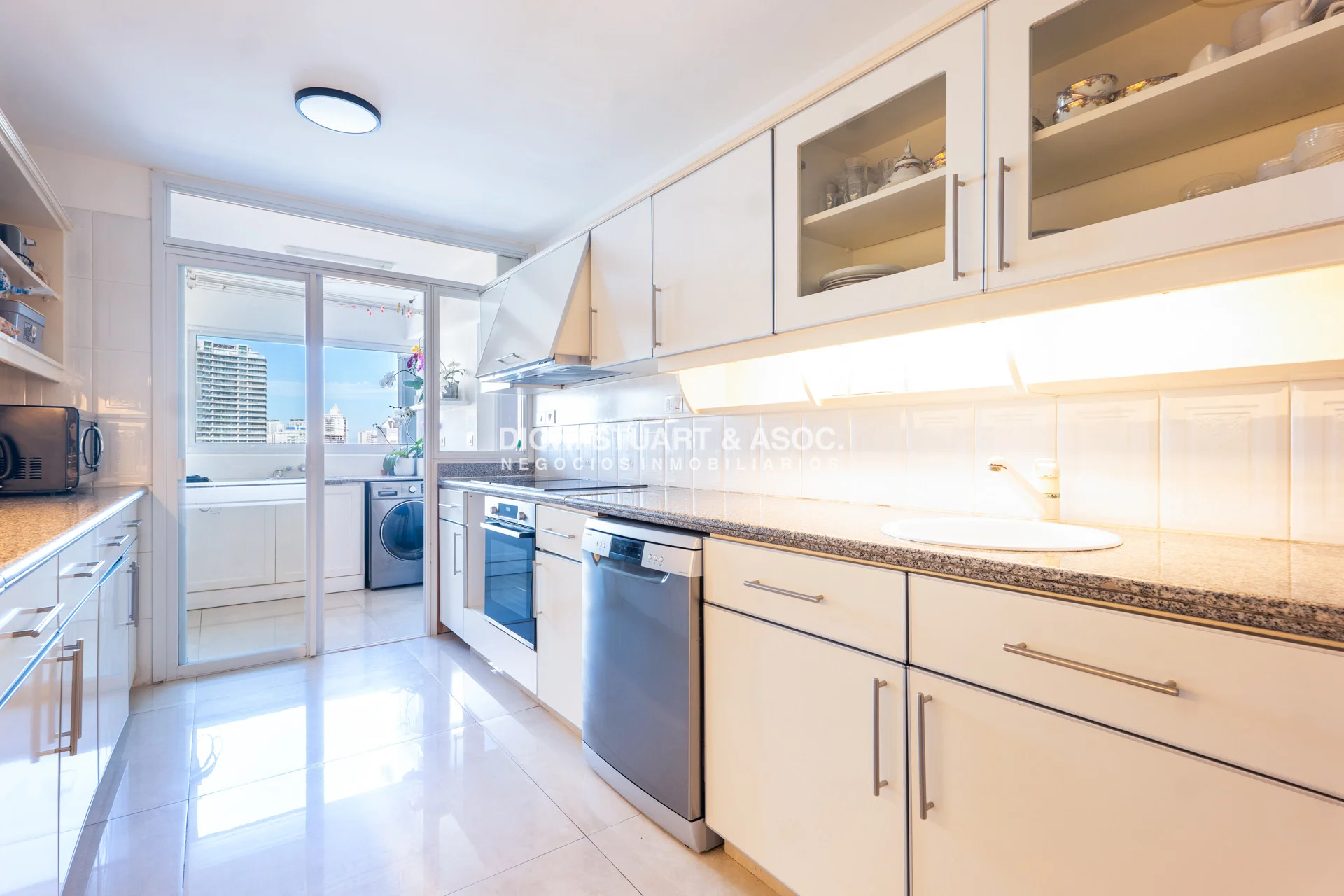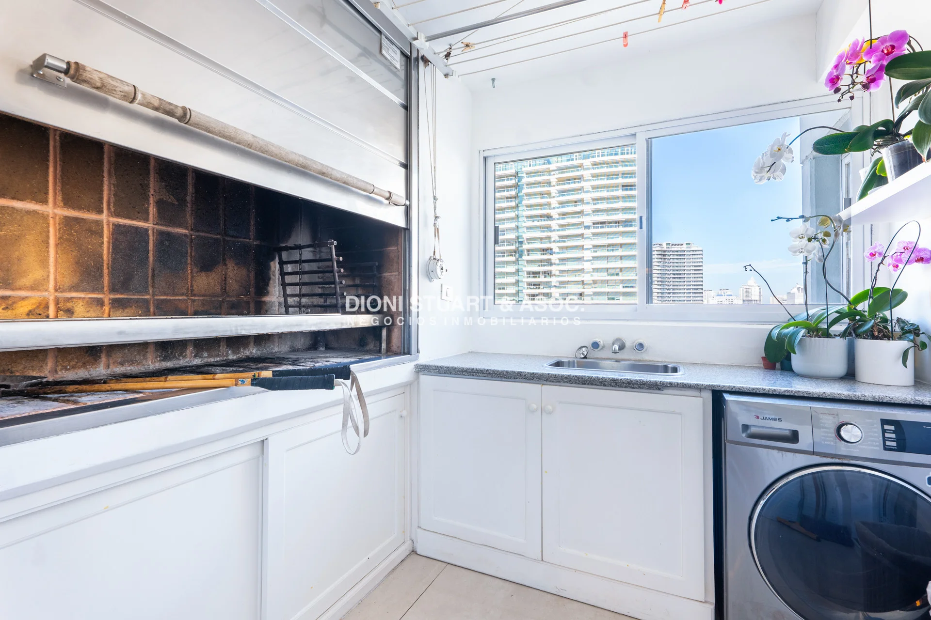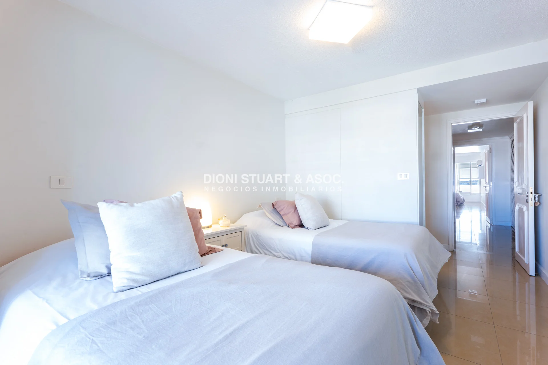 Este espacioso apartamento de 136 m2 cuenta con tres suites, principal con vista al mar y dependencia de servicio con baño, amplio living-comedor con toilette, cocina con comedor diario y parrillero.