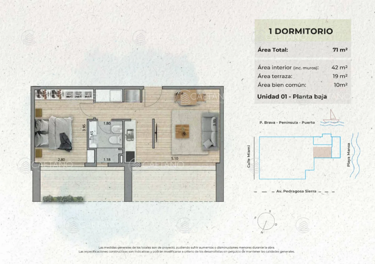 Con un diseño funcional, la unidad cuenta con un baño completo. La cocina integrada, moderna y bien equipada, te permitirá disfrutar de momentos culinarios mientras contemplas la belleza del entorno.