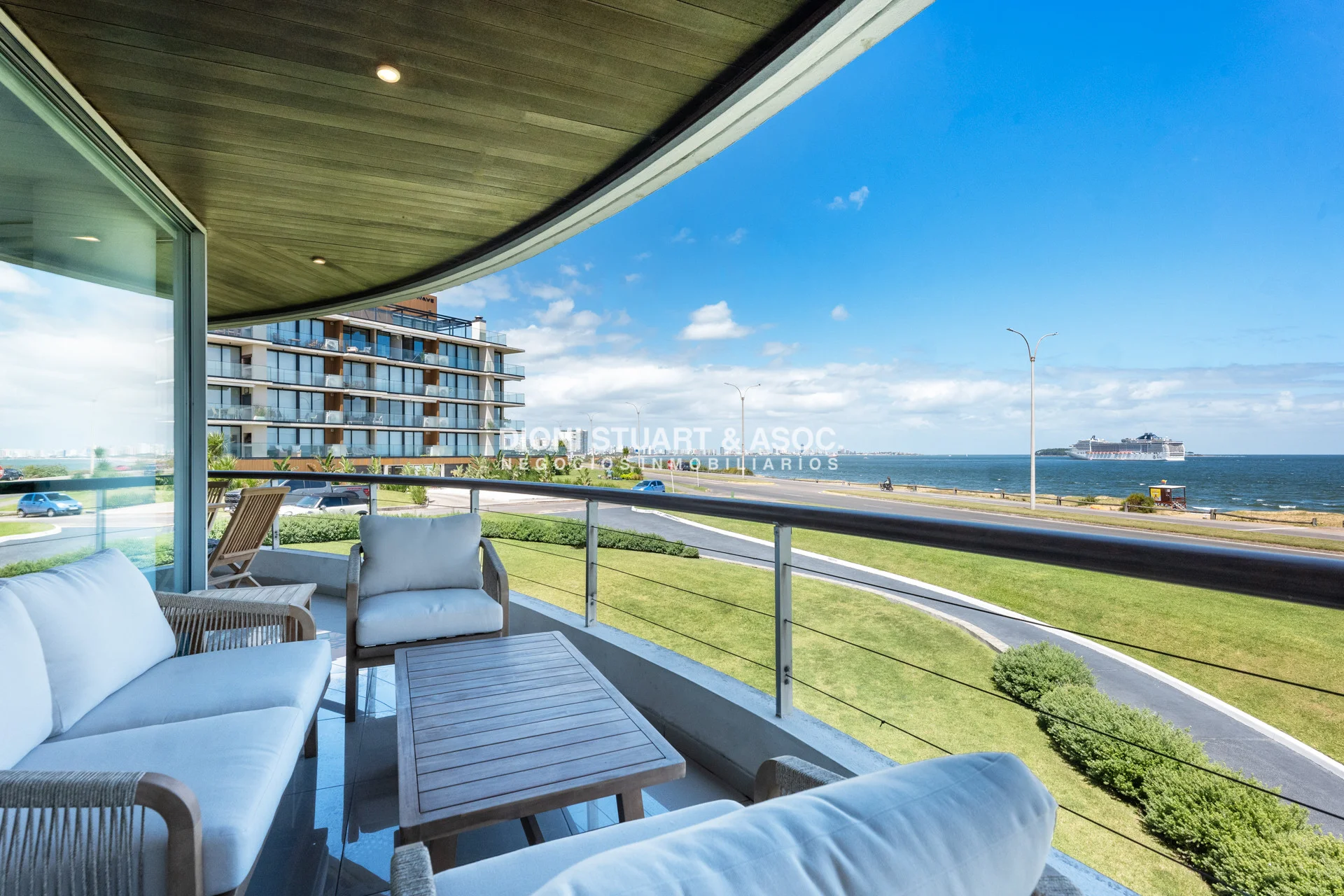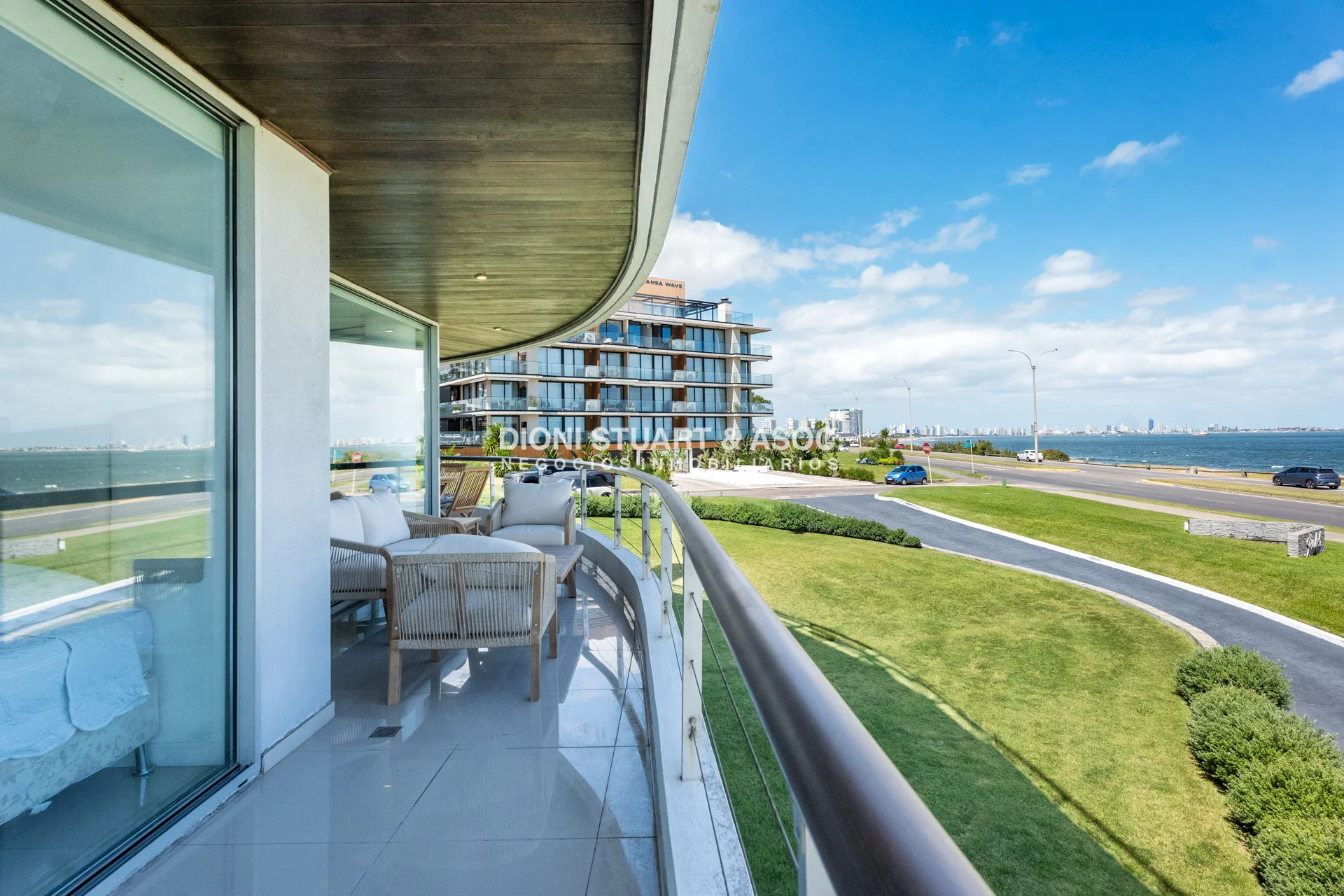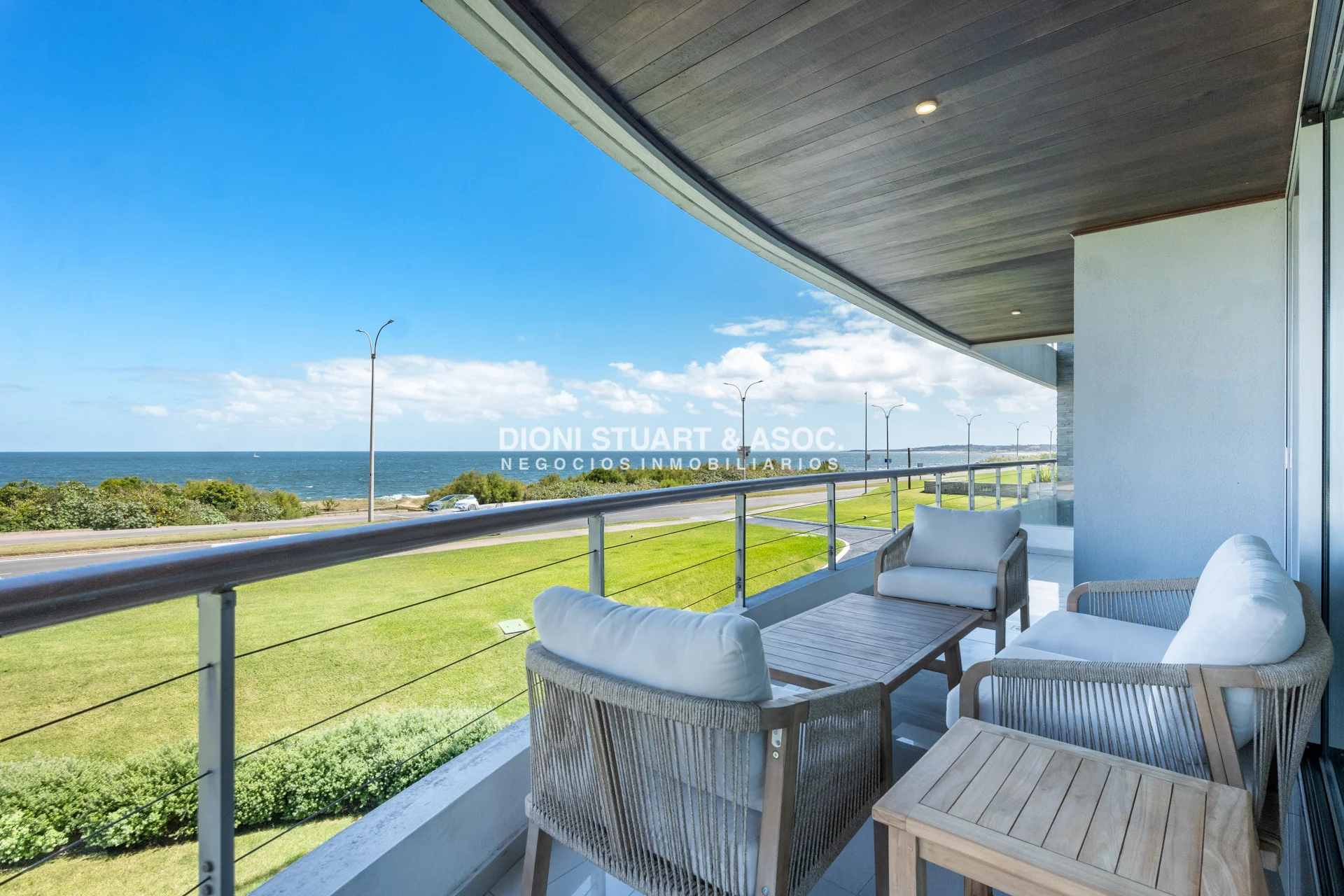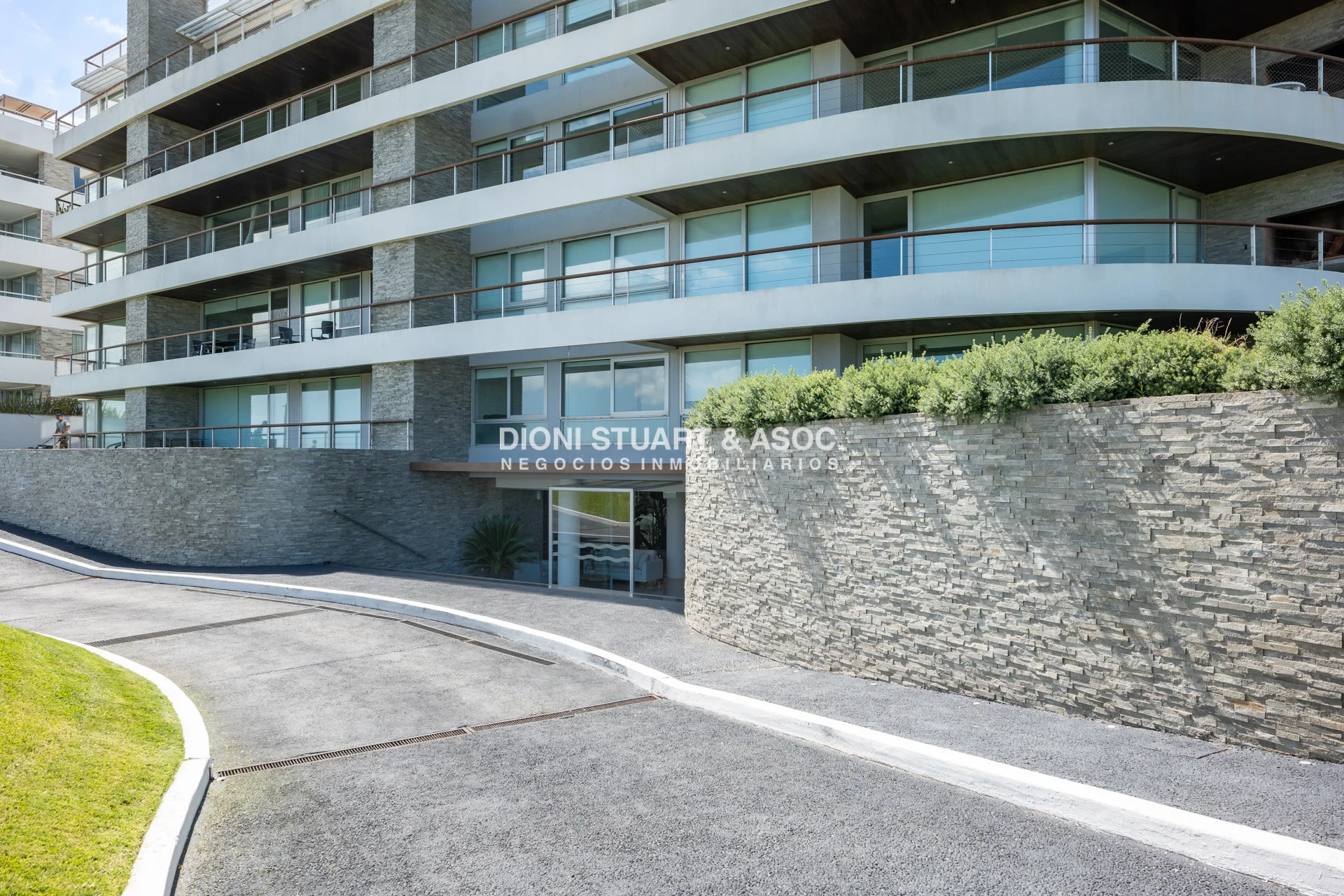 La unidad incluye garage en subsuelo, dentro de un edificio que se destaca por su arquitectura contemporánea, servicios de categoría y una ubicación privilegiada frente a la playa.