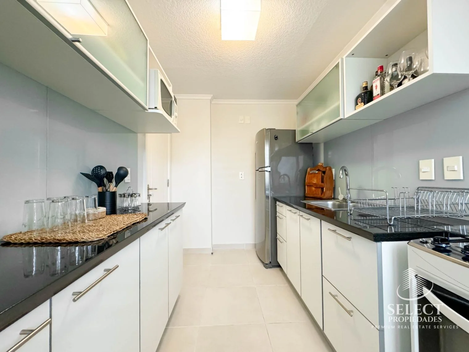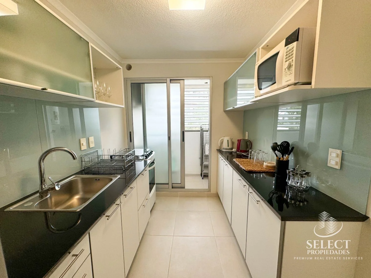 • Cocina definida equipada con heladera, horno, anafe, microondas, cafetera, pava eléctrica, vajilla y utensilios de concina.