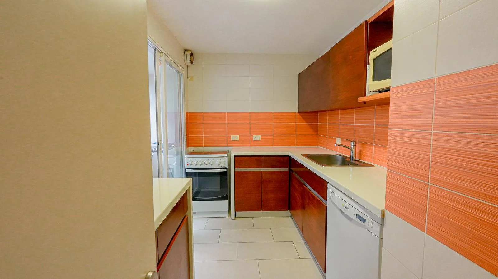 Cocina independiente, con salida a un balcón con parrillero propio, el departamento cuenta con losa radiante independiente. Living comedor al frente con salida a balcón.