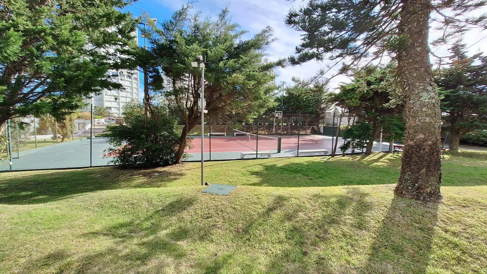 Tres canchas de tenis y cancha de paddle, ideales para quienes disfrutan del deporte al aire libre.