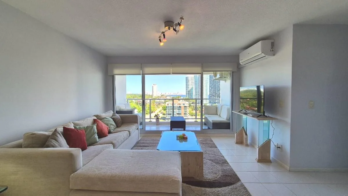 Ubicado en piso alto y con una vista abierta al mar, este amplio apartamento es ideal para quienes buscan alquilar en Punta del Este con comodidad, buena ubicación.