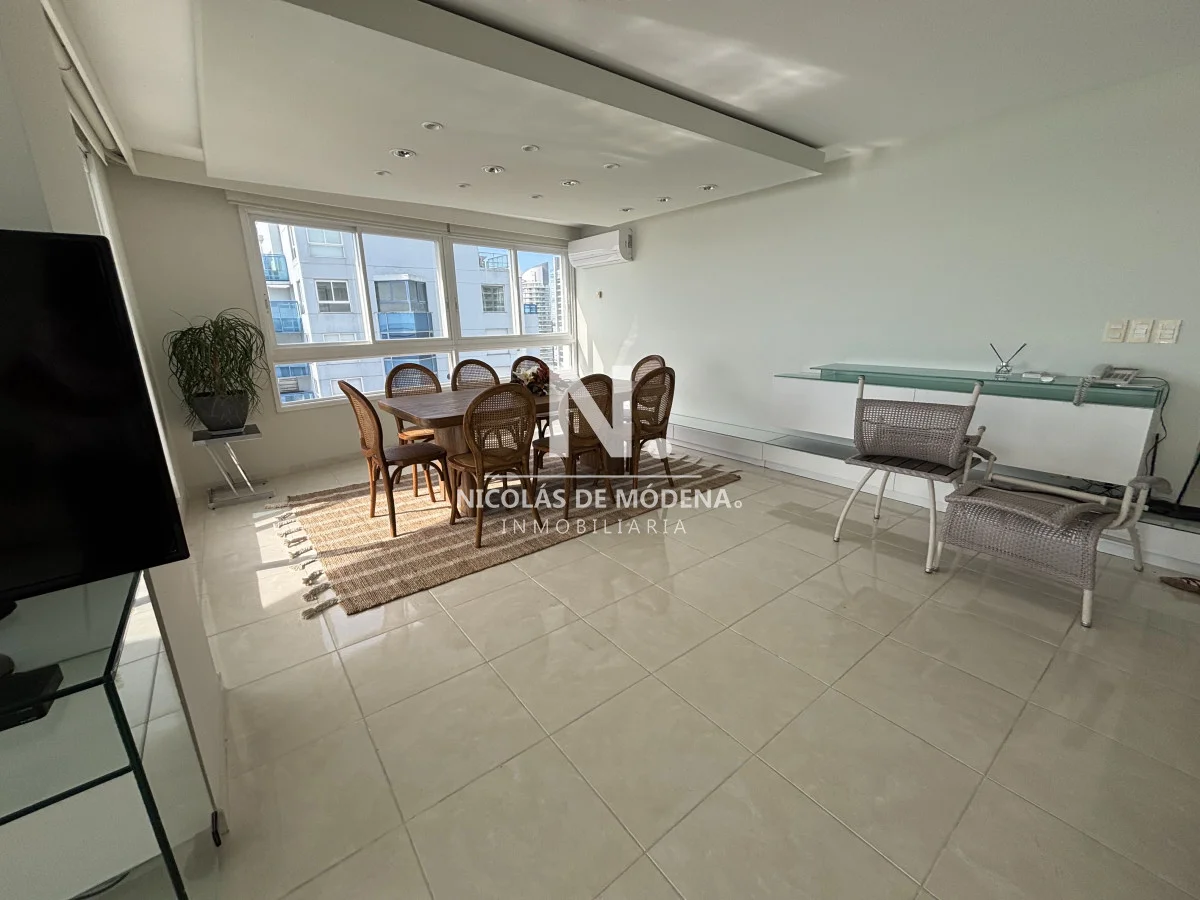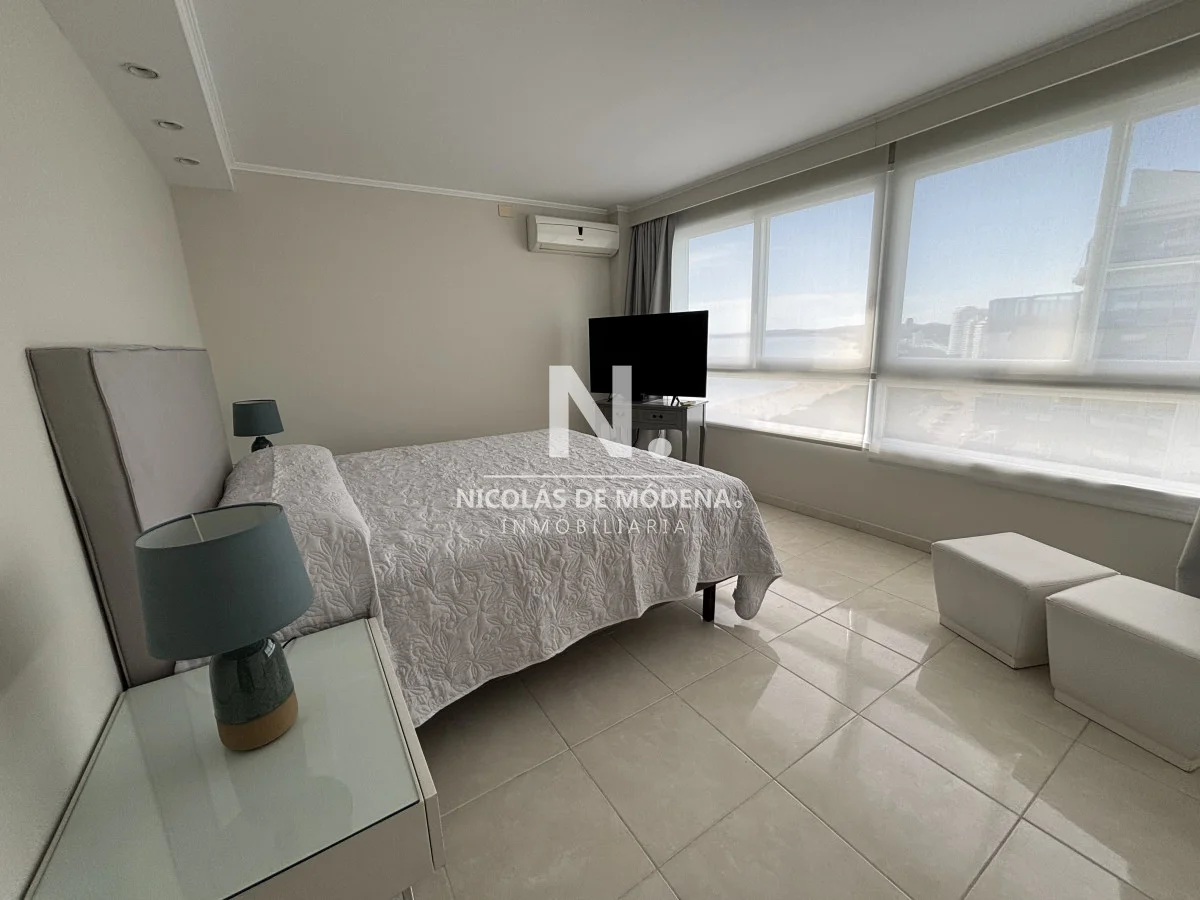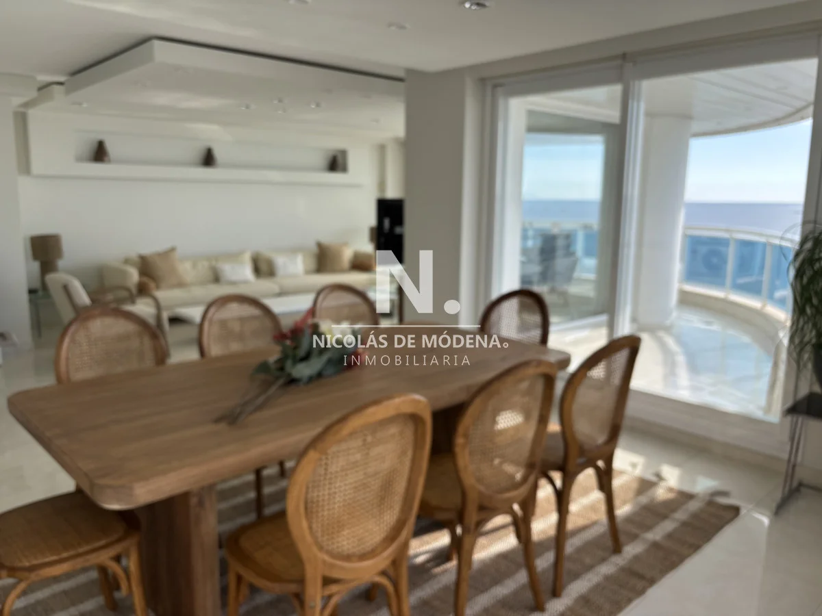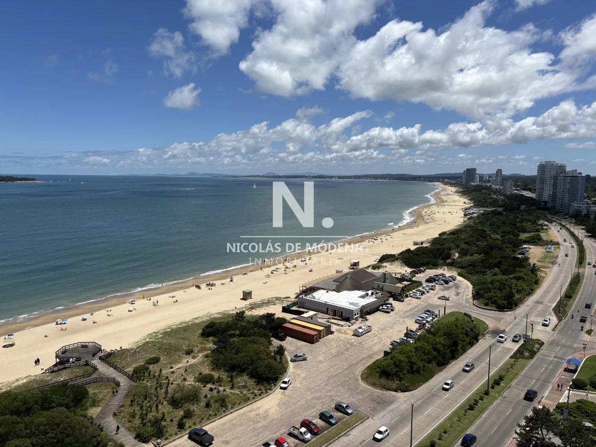 La unidad se encuentra en piso alto, ofreciendo una vista abierta y privilegiada al océano. Cuenta con un amplio living comedor con salida a una gran terraza balcón, ideal para disfrutar de los atardeceres más espectaculares de la Mansa. Dispone además de toilette de recepción, tres suites con excelente luminosidad y dependencia de servicio completa.