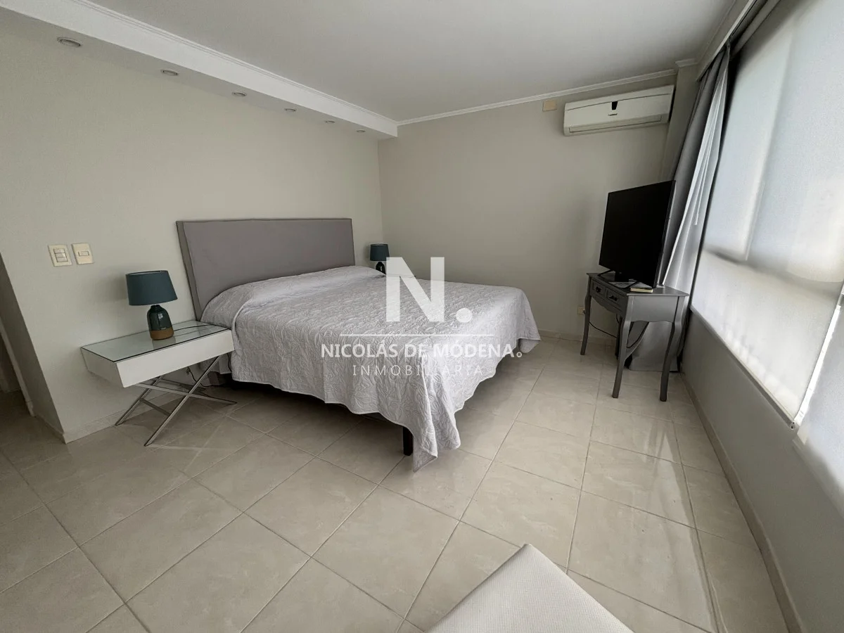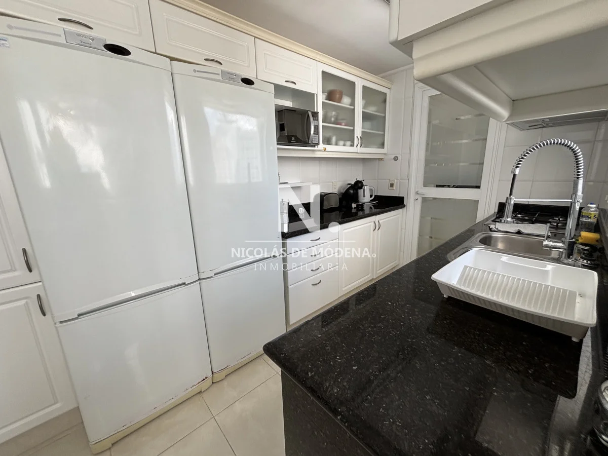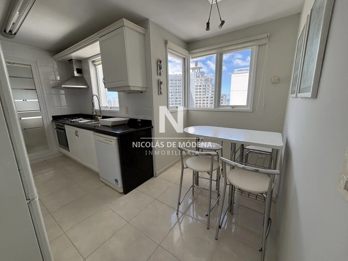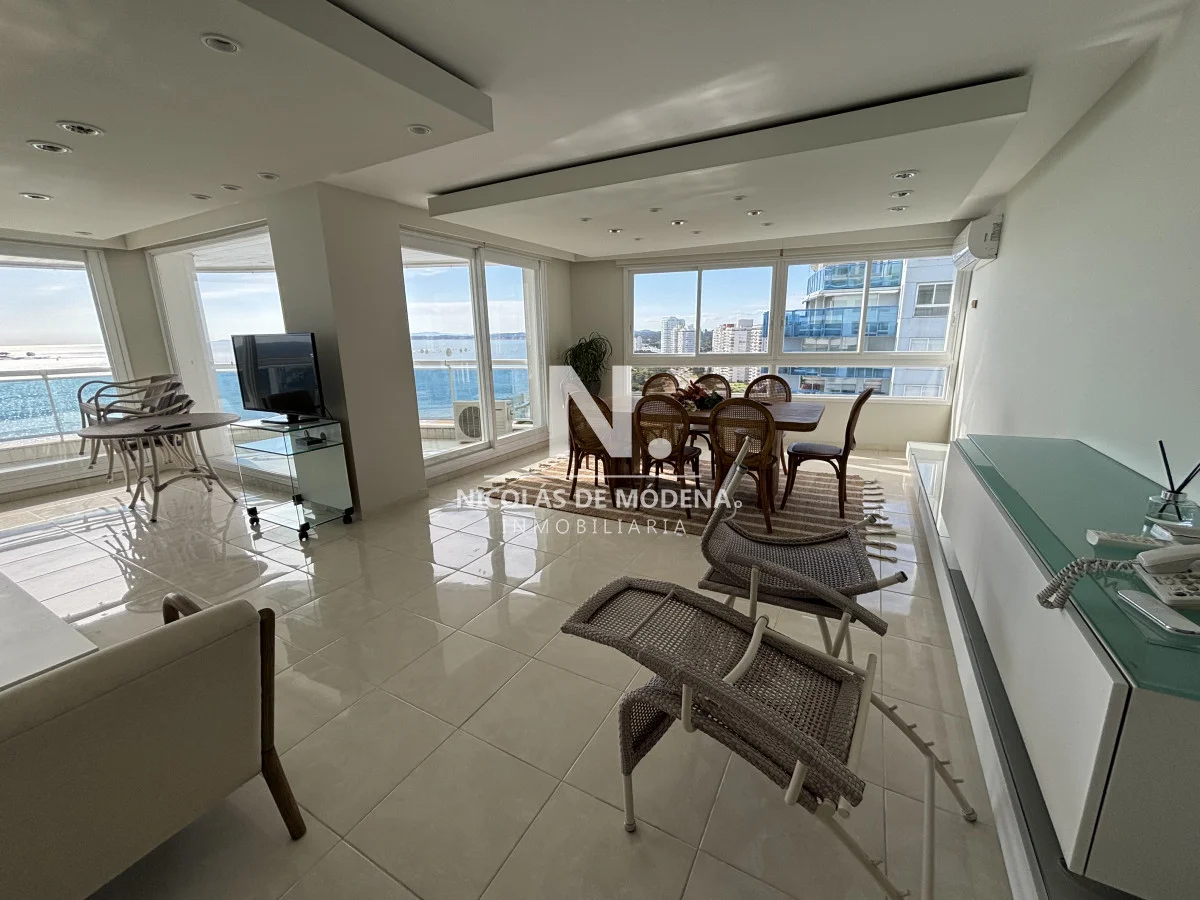 La unidad se encuentra en piso alto, ofreciendo una vista abierta y privilegiada al océano. Cuenta con un amplio living comedor con salida a una gran terraza balcón, ideal para disfrutar de los atardeceres más espectaculares de la Mansa. Dispone además de toilette de recepción, tres suites con excelente luminosidad y dependencia de servicio completa.
